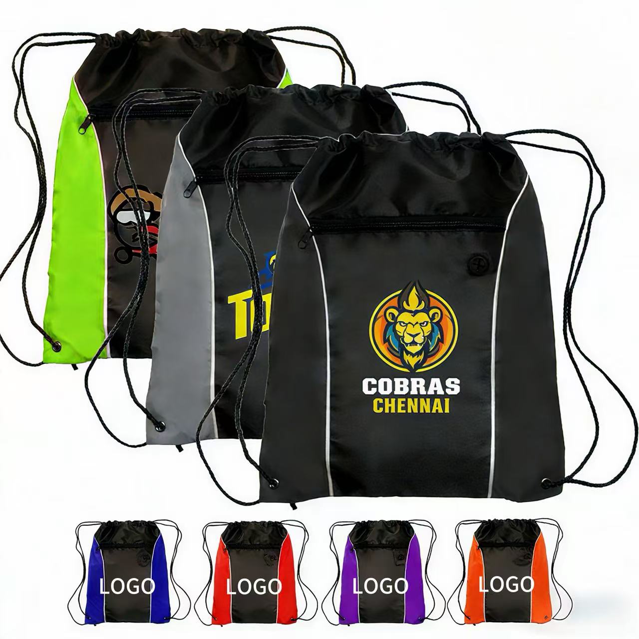 Conquer your day with the Ardron Drawstring Backpack! Crafted from tough 210D resistant polyester, this bag tackles daily adventures with ease. The spacious drawstring main compartment swallows your gym clothes, books, or wallet, while a handy front zippered pocket keeps essentials secure. Listen to music on the go with the built-in earbud slot, and metal eyelets reinforce the corners for long-lasting use, Available in a variety of colors and there’s plenty of space for your logo. Perfect for the gym, sports, yoga, or traveling. Spot clean and air dry for easy care. 3 days rush available for 1 color imprint only upon request.
