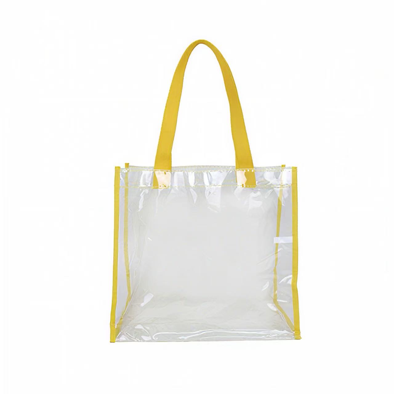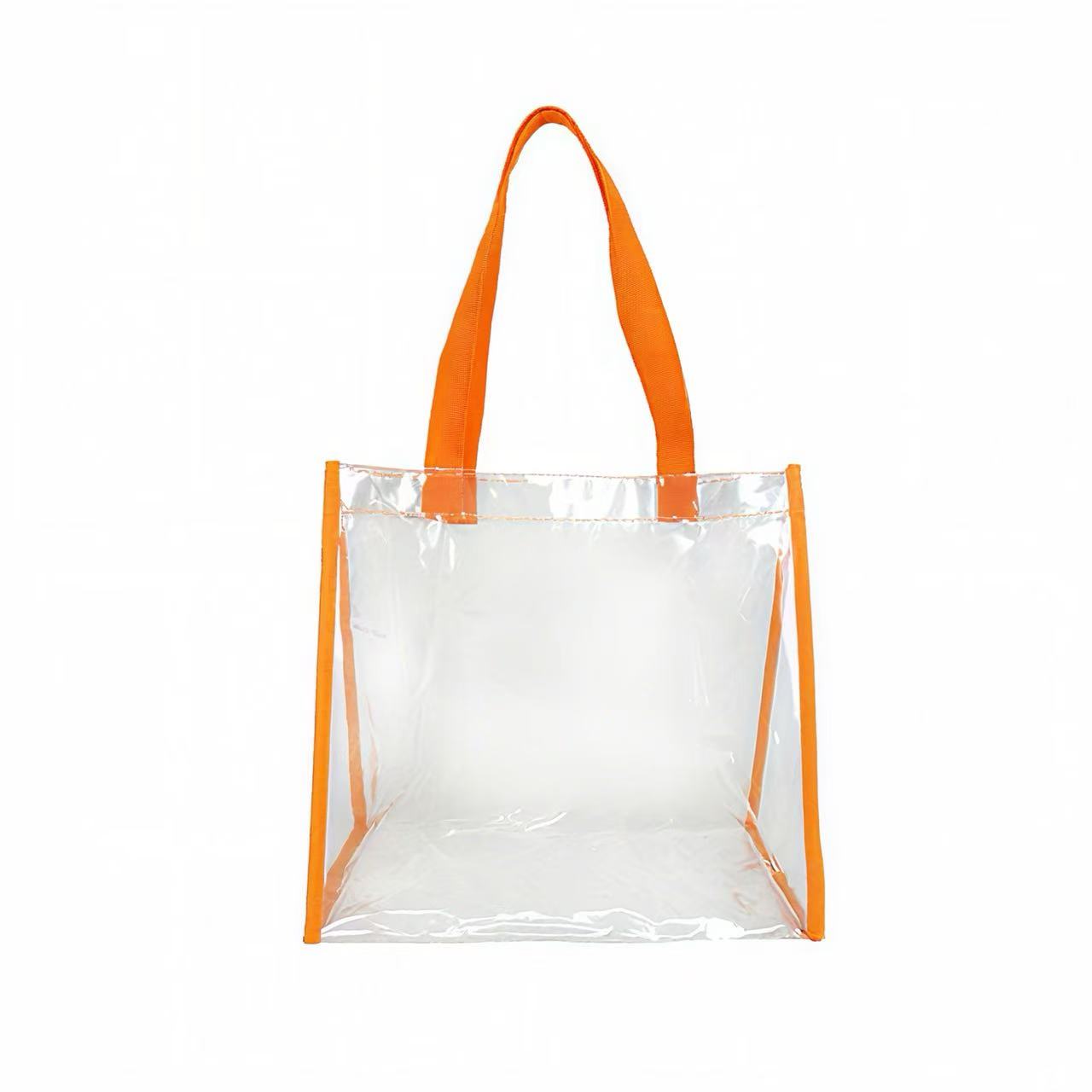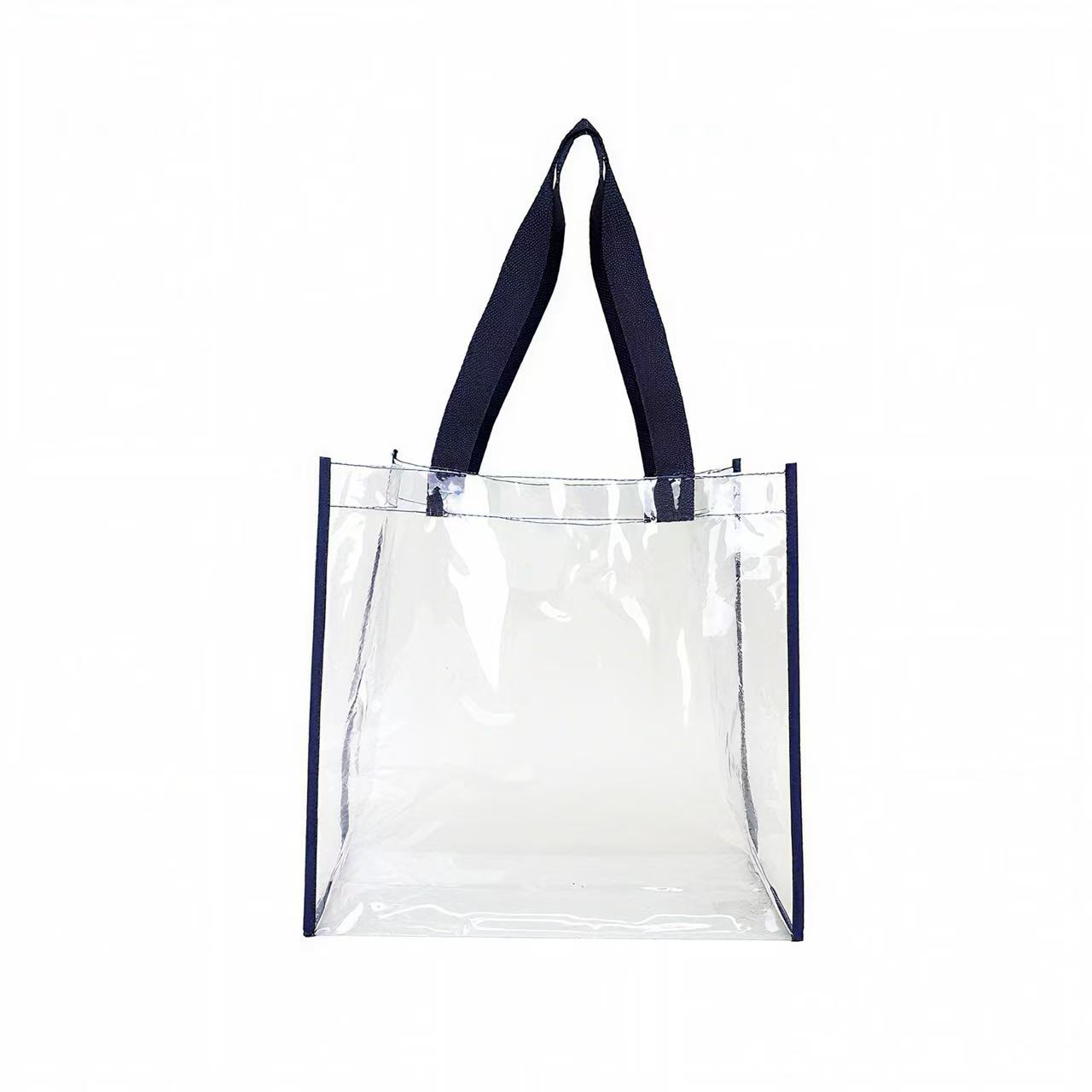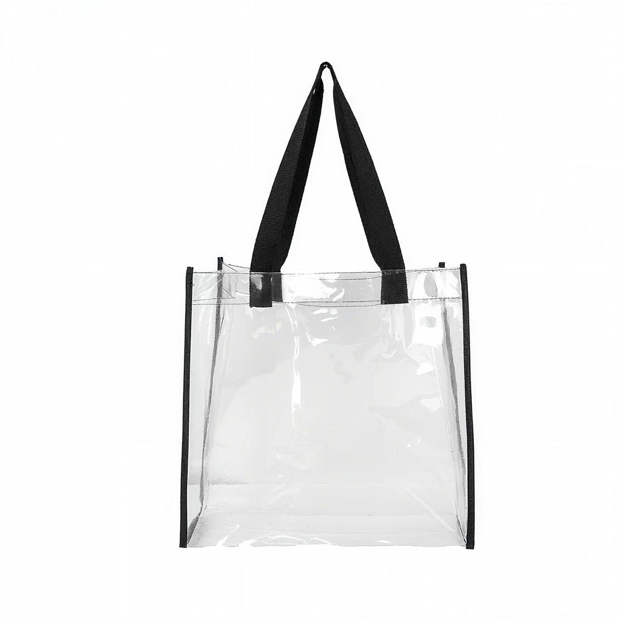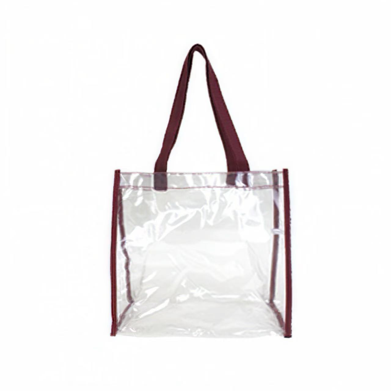 This clear stadium tote is made of heavy PVC (polychloride vinyl) material with black web trim and 21″ handles. This tote meets the requirements for a security bag for any NFL or PGA sporting event. It is perfect to take to a sporting event, concerts, beach and universities activities. Works well for travel, students who need clear lunch bags, office workers, sports, and concert fans. Great item for any place you need a clear bag.