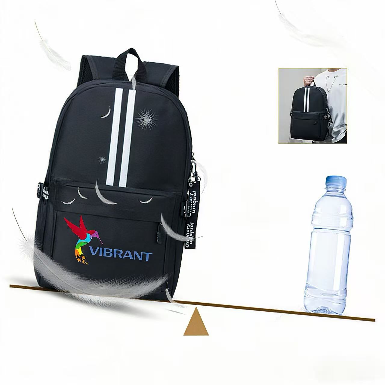 Frankie Travel Backpack is made of waterproof and scratch resistant 300D fabric and polyester lining. A large main zipper pocket provides multilayer space to store laptop up to 15.6”, 6 clothes, power bank and other necessities. A front zipper pocket is available for easy access of small stuffs. Two side pockets allow to store water bottle and folding umbrella. Weighing only 530g, you can carry the pack with adjustable shoulder straps or a handle effortless. Cellular breathable back panel in ergonomic design can relieve stress to ensure comfort. Perfect for school, work, travel excursions and etc.
