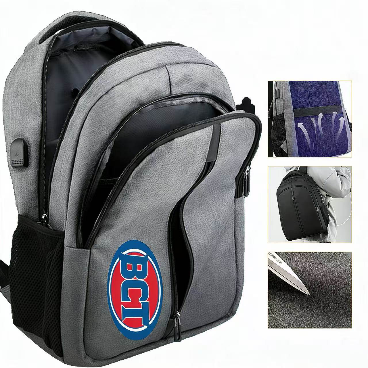 Glere Business Backpack is made of waterproof and wear-resistant nylon fabric and polyester lining. This large capacity backpack features a main zipper pocket with interlayer for laptop up to 15.6” and an organizing pocket to store and sort out your necessities like books, pens, power bank. A front zipper pocket is available for easy access of small stuffs. Two side pockets allow to store water bottle and folding umbrella. Equipped with an external USB charging port to charge your device at any time. You can adjust the length of shoulder straps to fit your height or carry the bag with a handle. Soft and breathable padded back panel in ergonomic design ensures comfort especially during long trip. Perfect for daily commute, business trips and travel excursions.