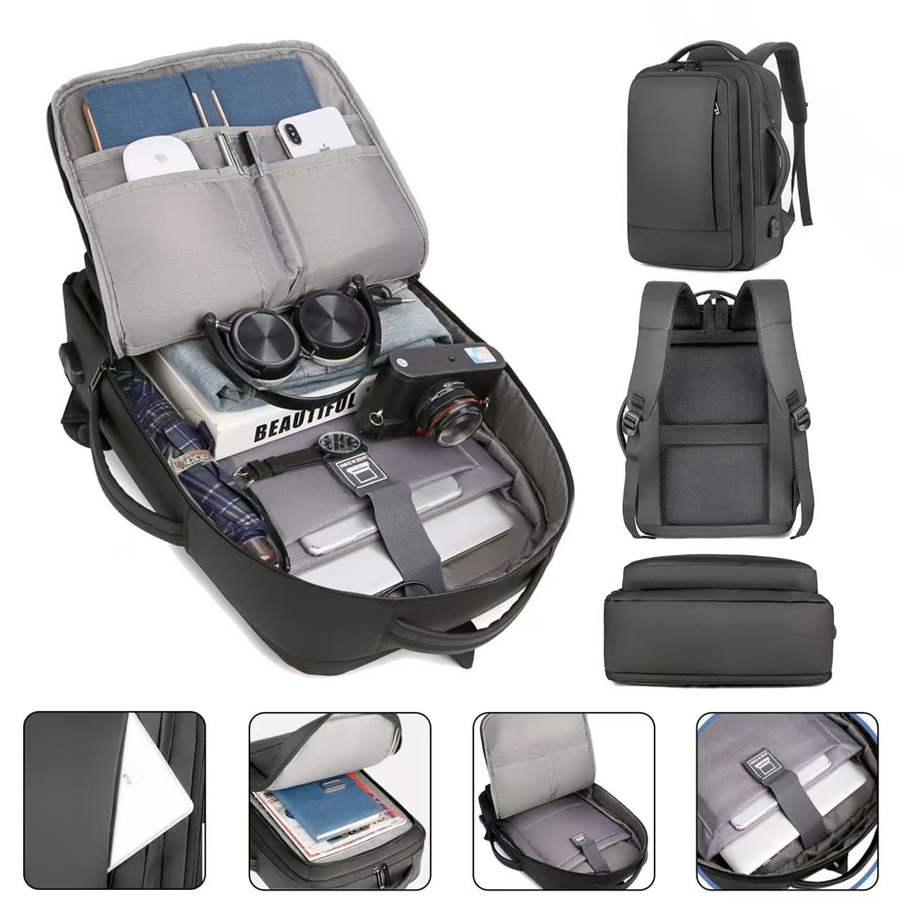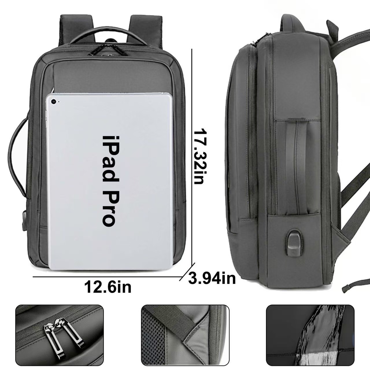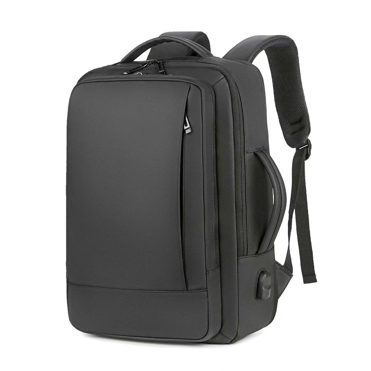 Done with waterproof Nylon fabric and polyester lining highlight this fashionable, practical Jaco Business Backpack. Top zippered pocket fit laptops up to 15.6″, two front zippered pockets for you to organized various items like books and clothes. This backpack with an expandable design gives you a greater capacity can easily fit 1-3 days travel gears. The two handles set on top and one side, which allow an easy switch between backpack and suitcase. Adjustable shoulder straps and comfortable airflow back design to release your shoulder stress. This modern backpack also features a built in USB charging port to charge phone and luggage strap to free your hands. It’s convenient to put it on the pull-rod box with the fixed belt to free your back. Ideal for traveling, offices and trade shows.