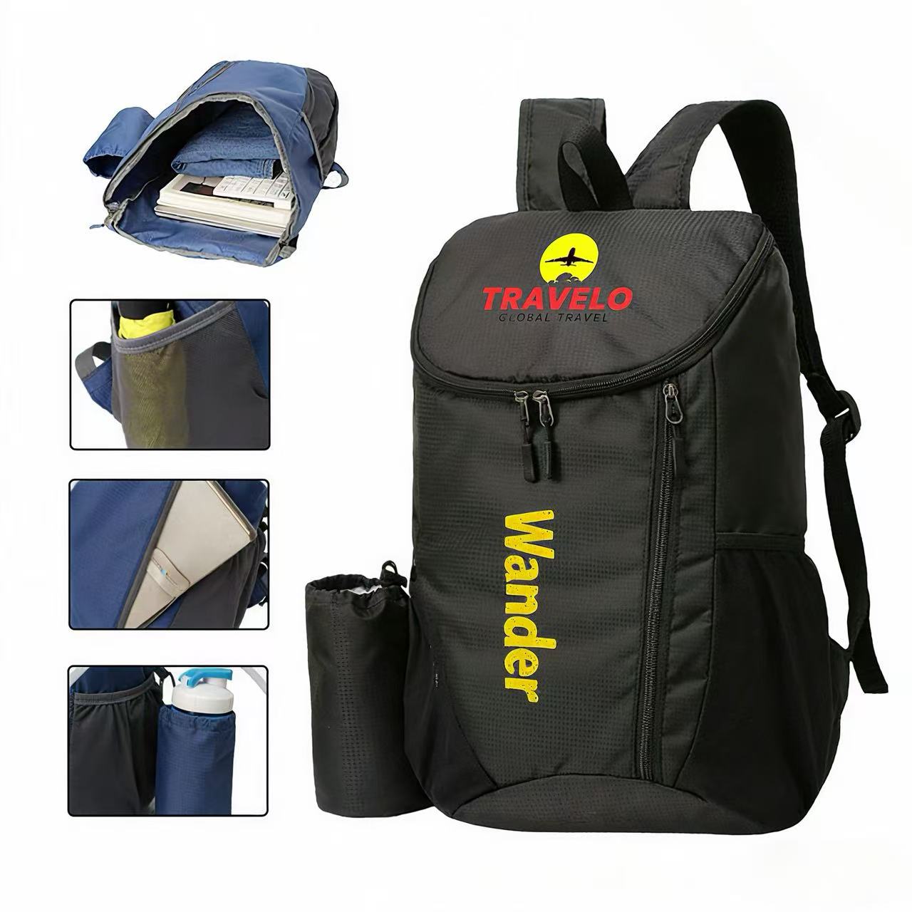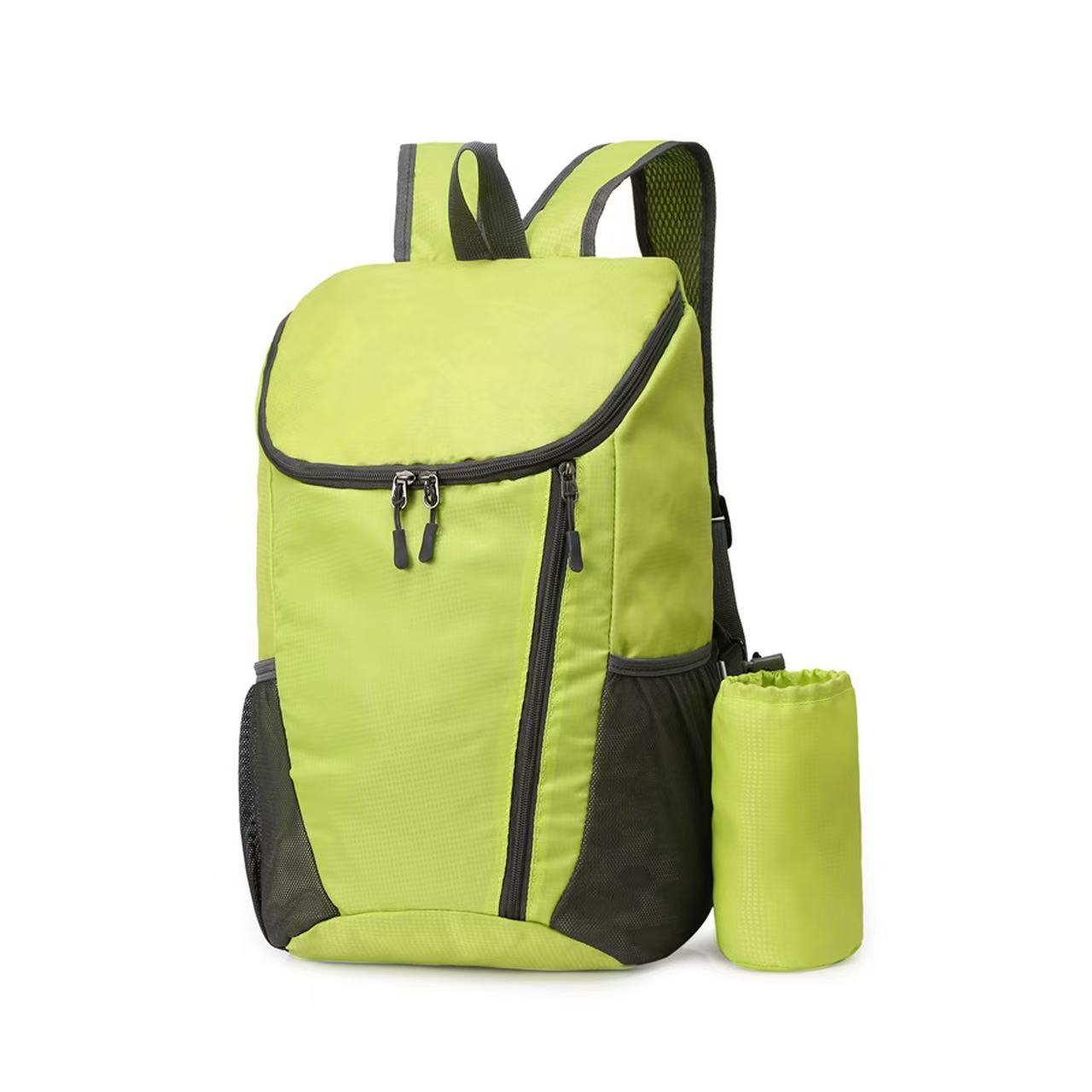 Carry Kaelo Foldable Travel Backpack and make every outing simpler and lighter! Made of waterproof, high-density nylon, it is lightweight and wear-resistant. The foldable design saves storage space, while mesh shoulder straps and a nylon hand strap ensure carrying comfort. The backpack also has a smooth double-way zipper, a detachable side water bottle pocket, and a spacious interior for all essentials. Front zipper pocket is designed for keeping small items. Come with a large imprint area to showcase any logo. Perfectly for travel, hiking, weekend getaways, and daily use.