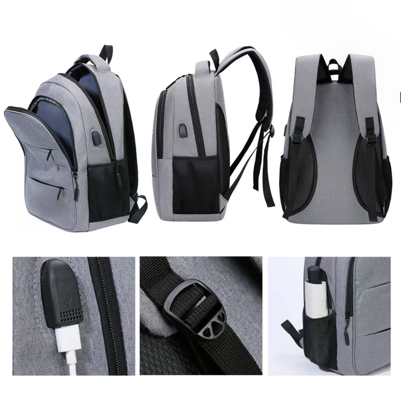 Experience comfort and style with Kiara Business Backpack! This high-quality Oxford cloth bag is waterproof and durable, with ergonomic S-shaped shoulder straps for comfort. It features a spacious interior with organized layers, adjustable straps, and an external USB port for charging. The bag includes various storage pockets and a breathable mesh back. It can be carried by single shoulder, double shoulders, or by hand. Add your logo or message to customize. Ideal for travel, business trips and trade shows.