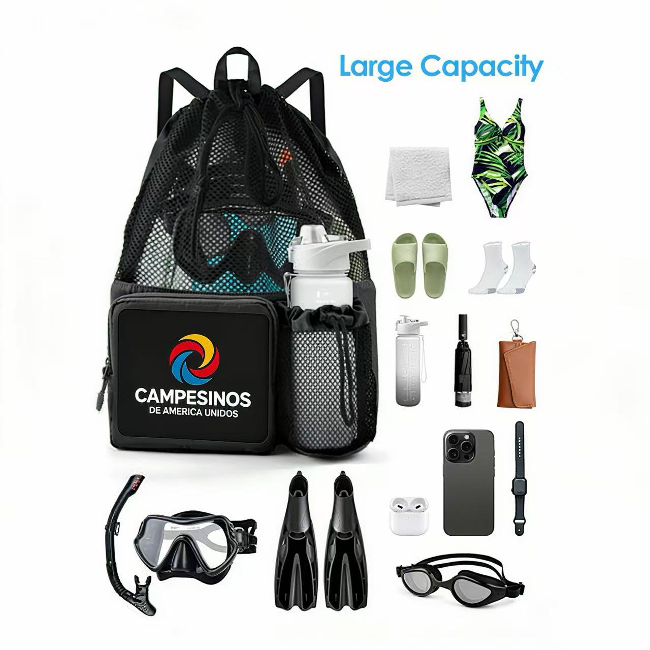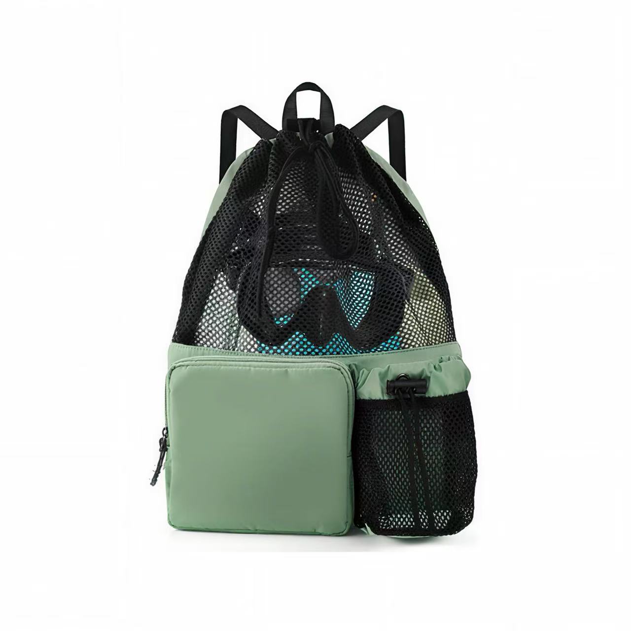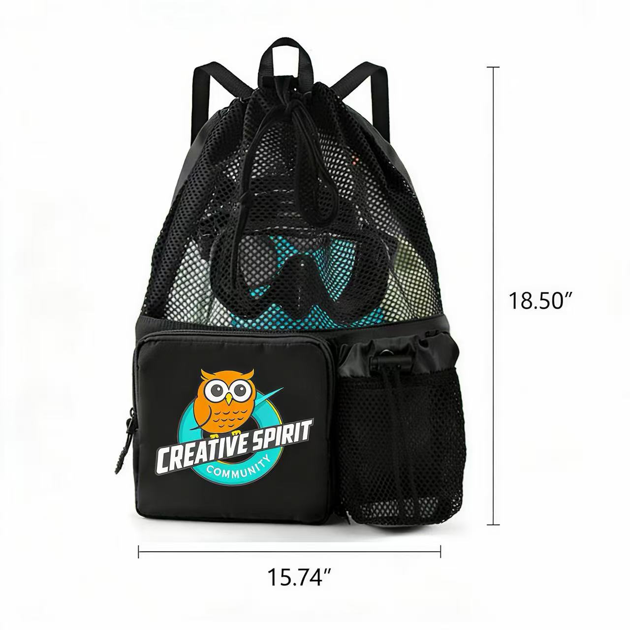 Meeting all your daily needs with our Kiora Multifunctional Drawstring Backpack! Crafted from oxford cloth and mesh, it offers large capacity plus multiple functional designs: lockable drawstring closure, see-through breathable mesh, lockable drawstring bottle bag, and a front zip bag. An internal wet pocket—made of PVC waterproof fabric—protects valuables like phones, wallets, and watches from water damage. Large Capacity suits storing stationery, cosmetics, sundries, toiletries, and shoes. Large imprint area for your logo. Perfect for beaches, gyms, yoga sessions, and travel.