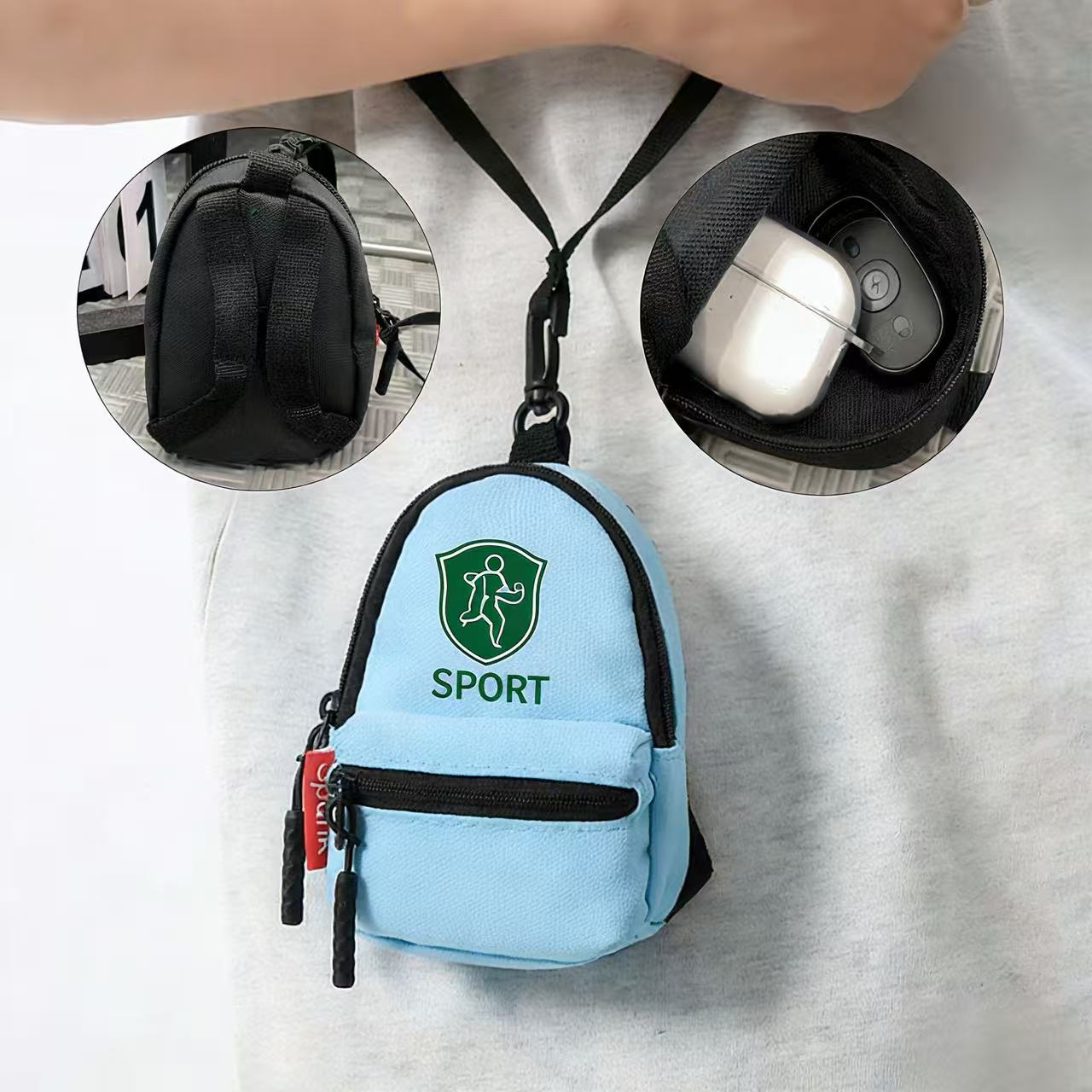 Klora Coin Purse is your perfect companion for staying organized on the go. Made of durable Oxford fabric, this backpack shaped pouch features zippered pockets for storing your small items. Attach it to your bag or use it as a crossbody pouch with the detachable lanyard. Customize with your logo to make it stand out in the market. Ideal for holding keys, earphones, etc.
