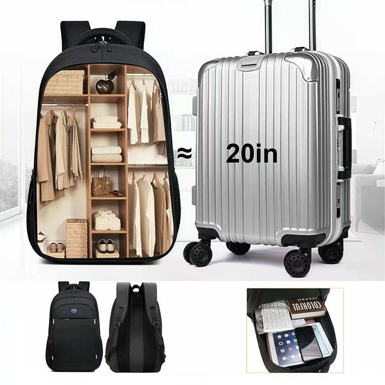 Lauger Business Backpack is made from waterproof and durable Oxford fabric and polyester lining. It is equivalent to a 20-inch suitcase with large capacity to meet your needs. A large main pocket with interlayer and two zipper pockets provide roomy space to store your laptop, power bank, clothes, books and other necessities, making your journey more convenient without carrying a heavy suitcase. Two side pockets are available for folding umbrella and water bottle and one front pocket help easily assess to small items. You can store valuables like cash, cards in the rear pocket. Soft and breathable shoulder straps and back design can relieve the stress of shoulder for comfortable wear. Reflective strips ensure your safety when travel at night. It’s s your best choice on daily commute and long trip.
