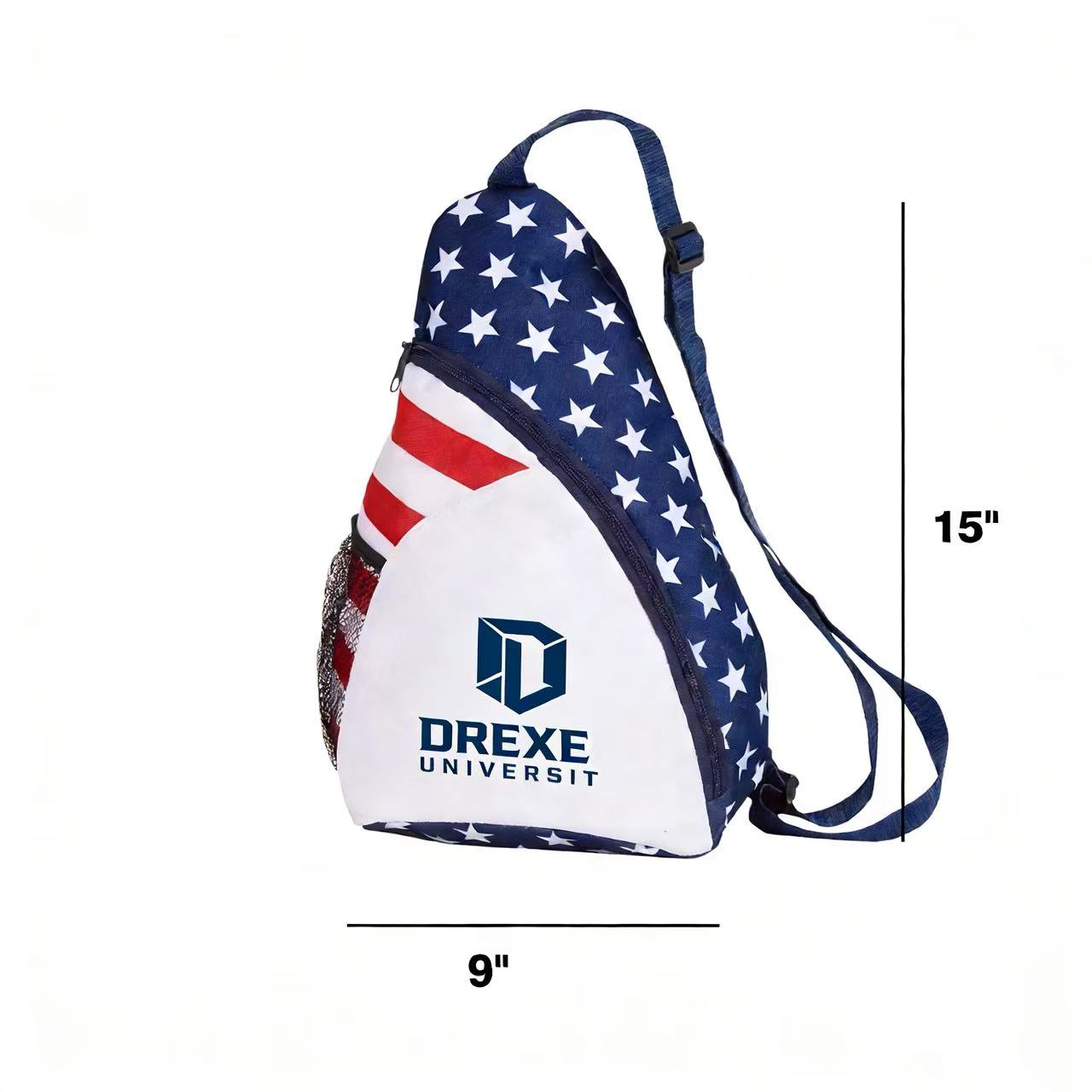 Show your patriotic pride on the go with our stylish sling backpack! Crafted from durable 600 denier material, this versatile bag features a spacious main pocket adorned with a vibrant stars and stripes design, perfect for storing essentials like your phone and power bank. Stay hydrated with the convenient side mesh pocket, and enjoy a comfortable fit thanks to the adjustable shoulder strap. Whether you’re hiking, biking, or exploring the city, this compact backpack is your perfect companion.