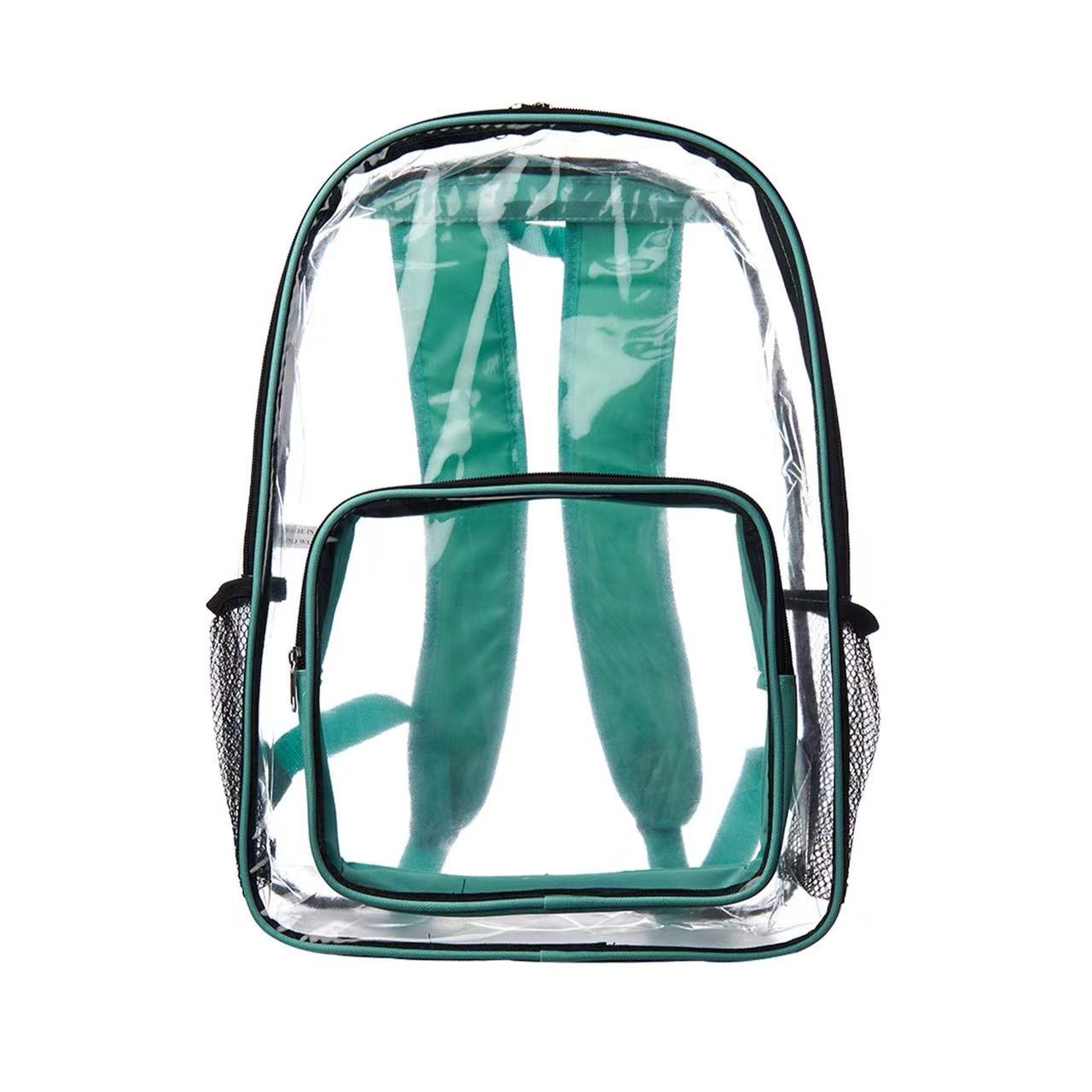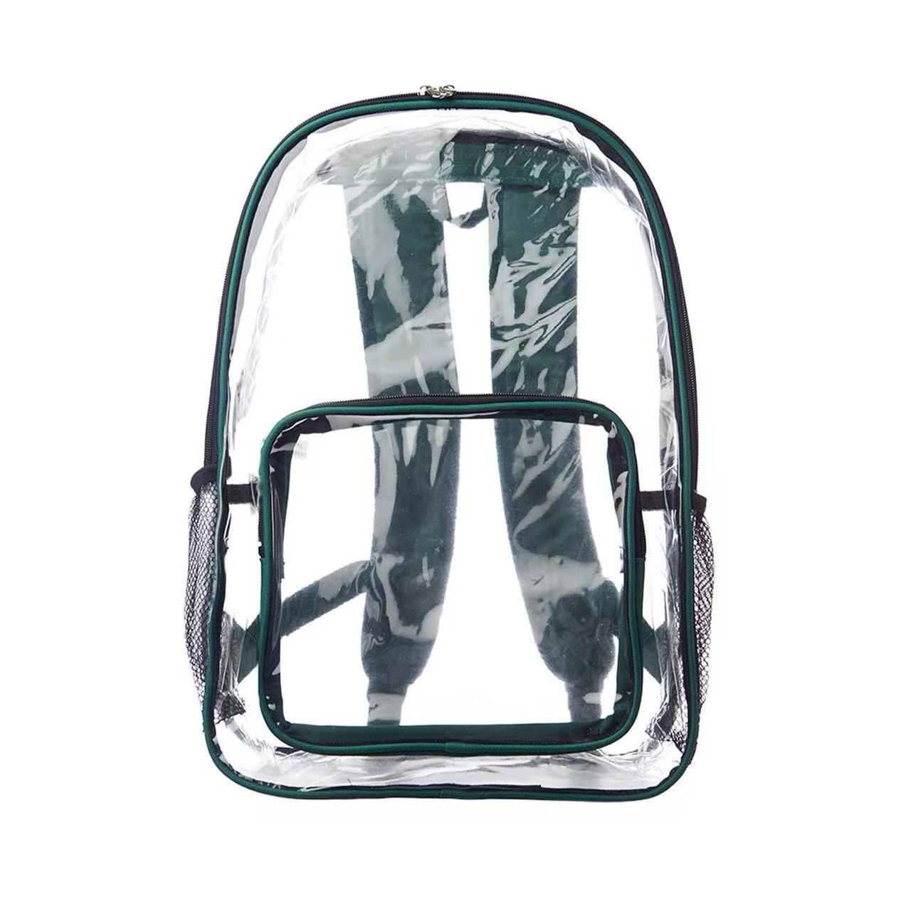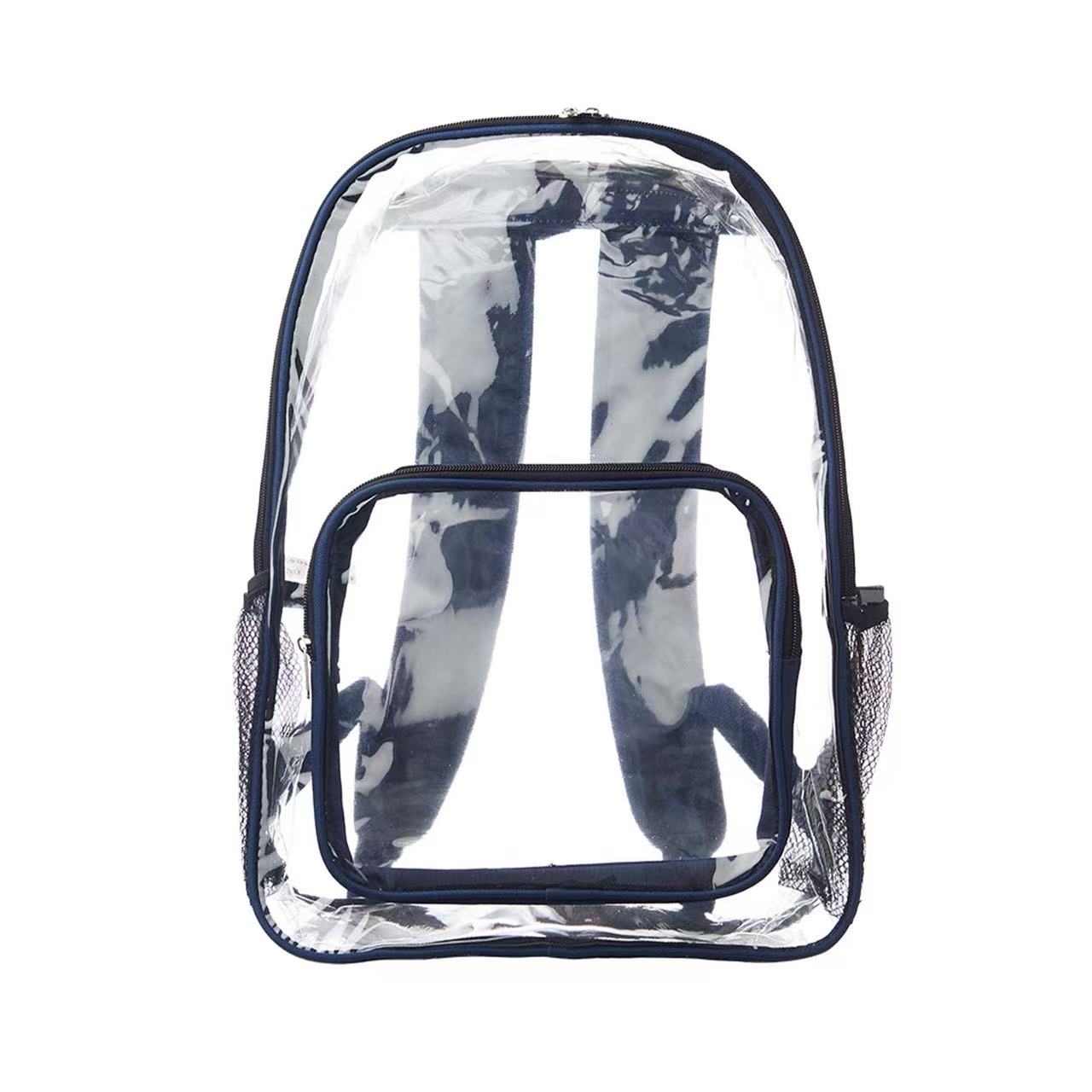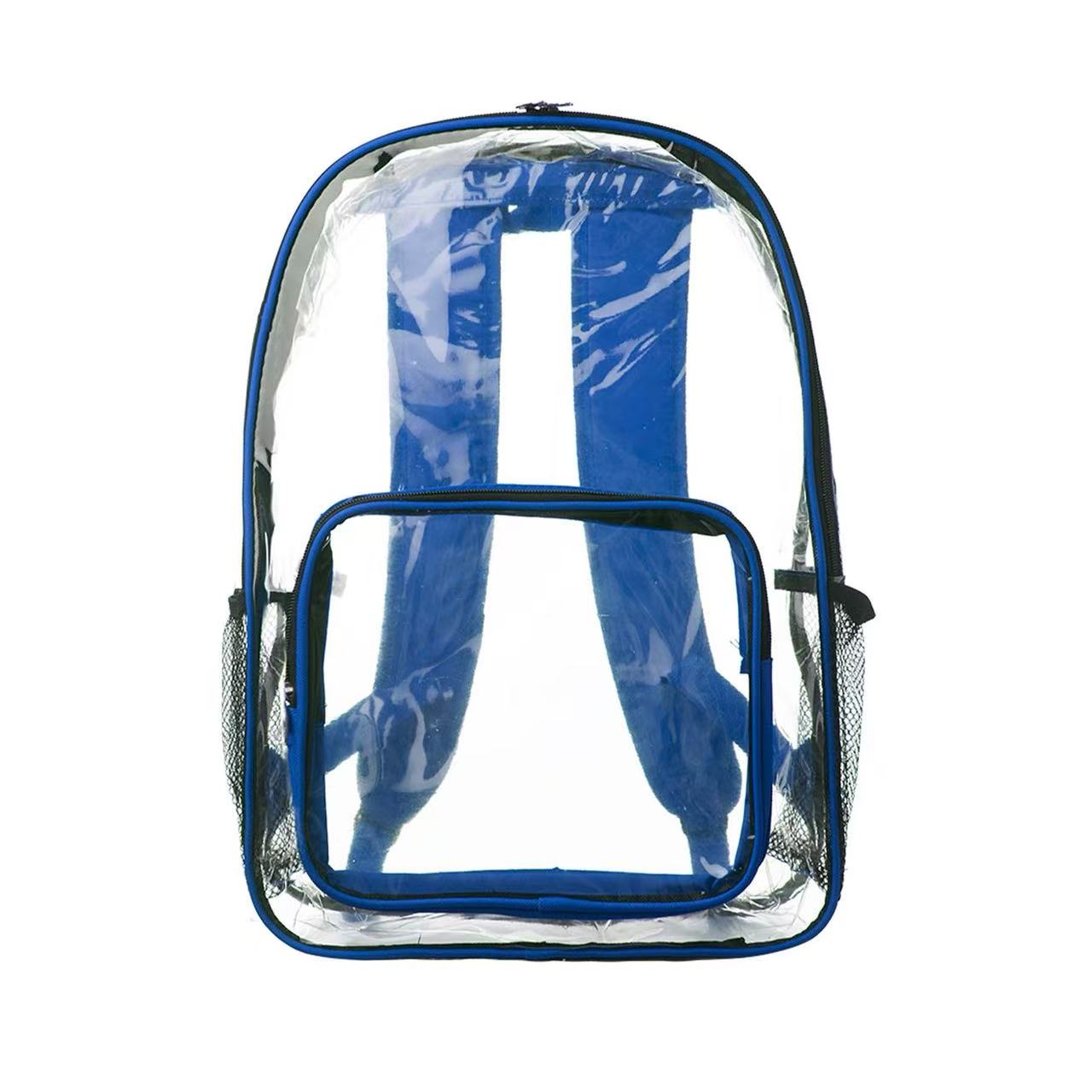 Made of 20C PVC plastic, Leroy Clear Backpacks is a great choice when you have to go through security! It features clear zippered body and front pocket, two mesh side pockets, and color accent piping that matches the adjustable padded straps and handle. This clear backpack is also a great marketing product for travel companies, schools, universities, and corporations! 3DAYS Rush available upon request.