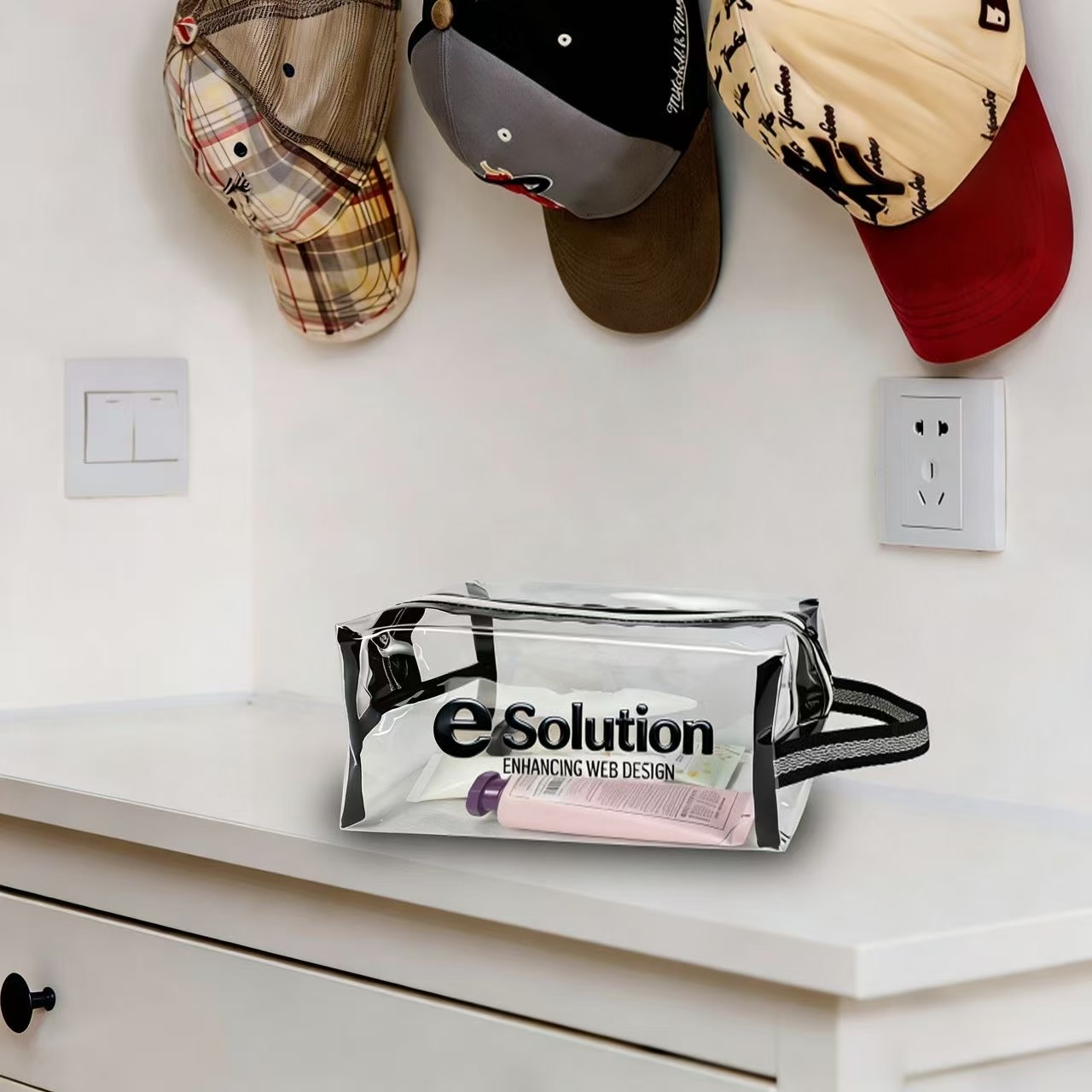 The Clear Travel Bag with your logo promotes your brand while providing customers with a convenient travel tool. Made of 25C TPU, 600D Polyester, 100% BPA and PVC free, eco friendly, soft and smelless.With handle design allows you to hang on a towel rack, shower rod or anywhere you need. The Clear Travel Bag is the perfect size to hold the necessary toiletries for a good trip. Ideal gift for your best friends or people that loves traveling.