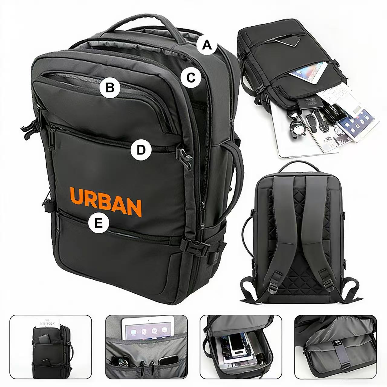 Morwin Business Backpack is a must-have for commuting or studying at university. Made of durable nylon fabric and polyester lining, this bag features a large capacity main pocket can hold a laptop up to 15.6in and additional four pockets to store umbrella, camera and keep them organized. Comes with a charging slot provides easy access to charge (power bank not included). Dual handles set on top and one side fit for different carrying styles. Soft and breathable padded back panel in ergonomic design ensures comfort especially during long trip. Put it on the pull-rod box with the fixed belt to free your back. With custmization offered, you could add your logo or message on this versatile bag ideal for travel, business trips and trade shows.
