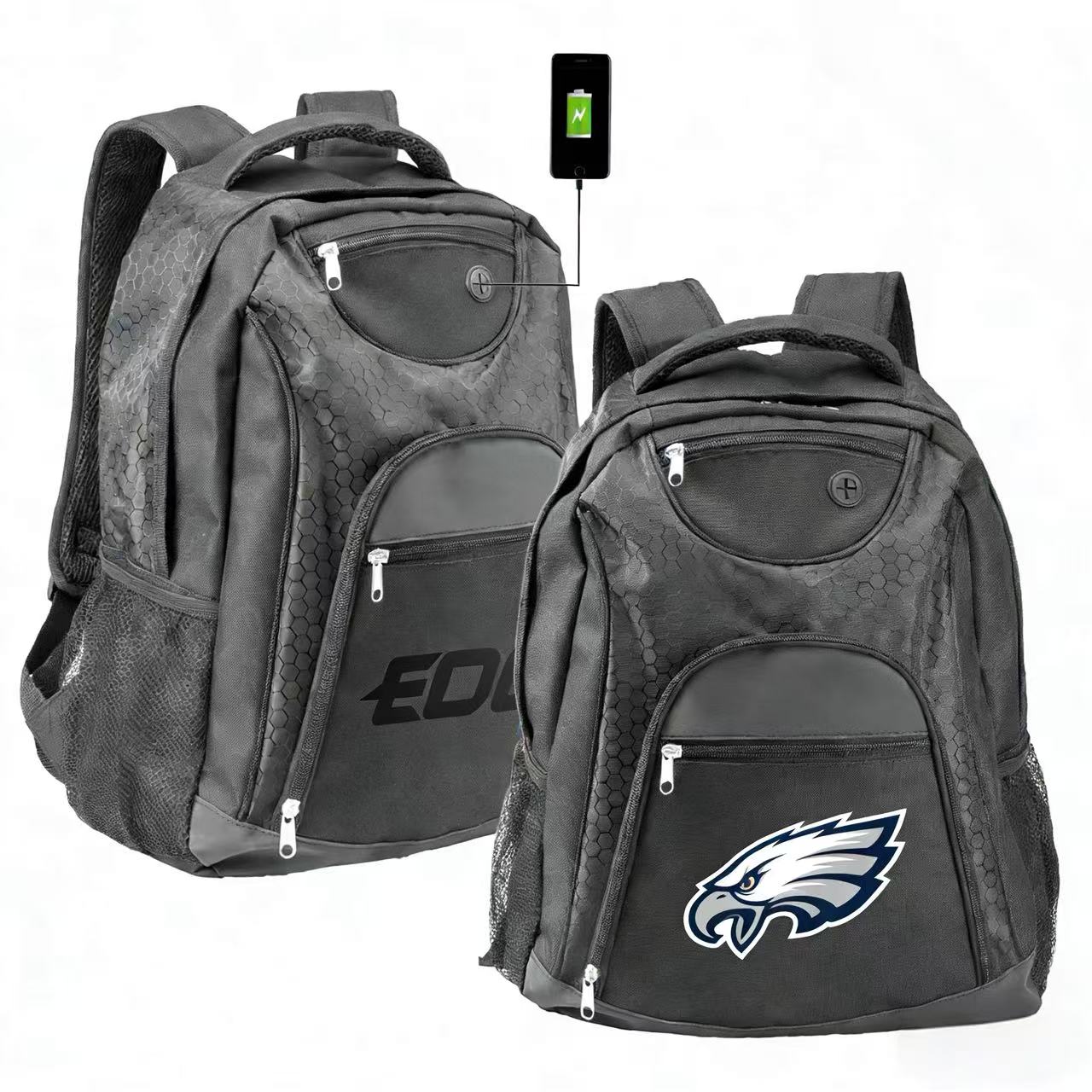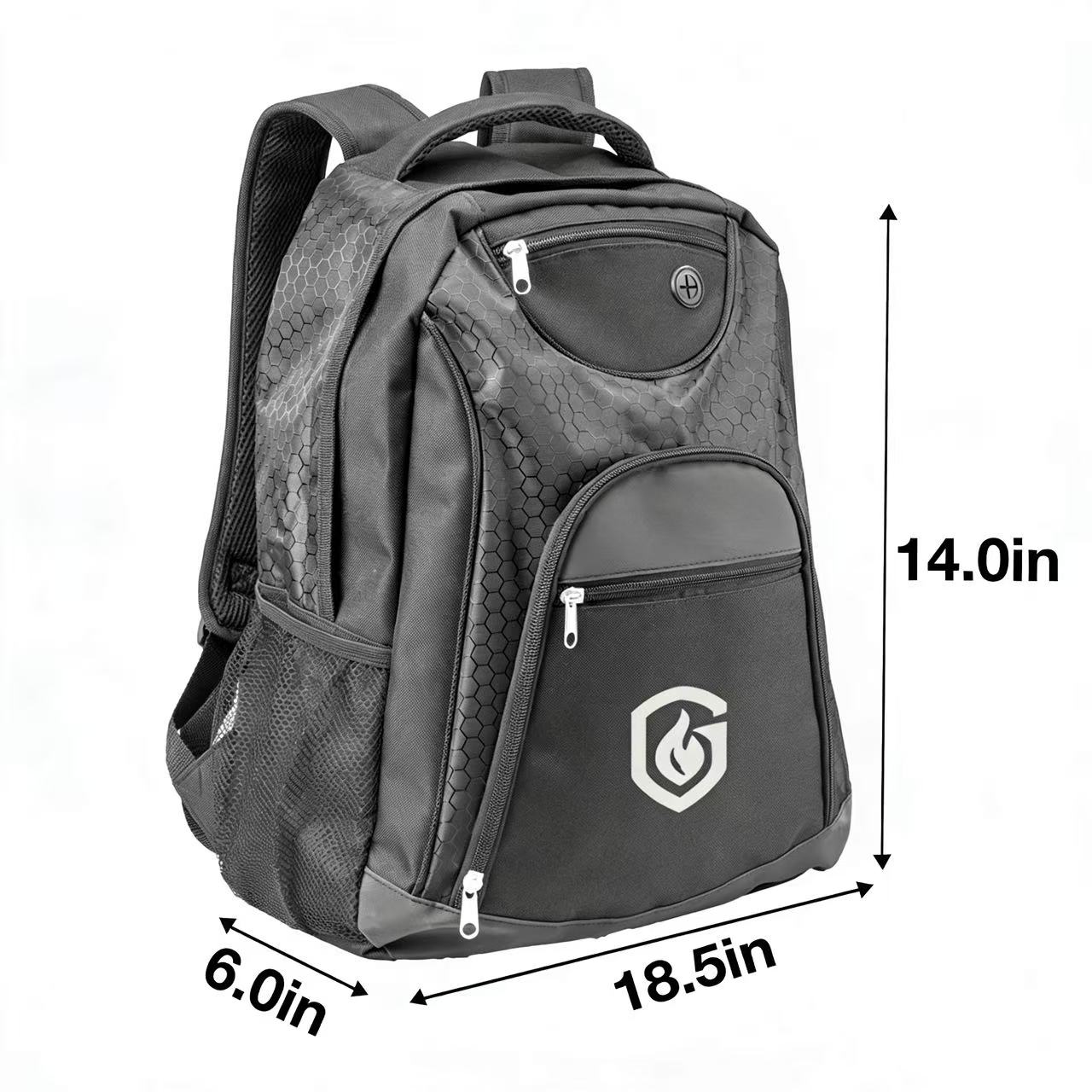 Stay organized on-the-go with the Oriel Transit Backpack! Made from tough 600D PU polyester, this backpack tackles your daily commute or travel adventures with ease. The main compartment features a padded laptop sleeve that fits up to 15.4″ devices, keeping your tech safe. Multiple pockets keep everything organized, including 3 zippered fronts for easy access items, 2 mesh side pockets for water bottles, and interior pen loops and card slots. A built-in earbud slot lets you enjoy music hands-free, while adjustable shoulder straps ensure a comfortable fit. 3 days rush available for 1 color imprint only upon request.