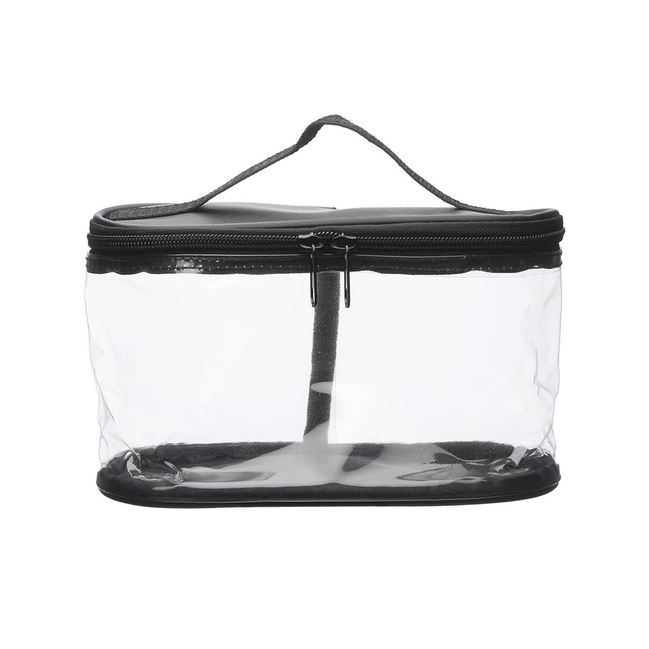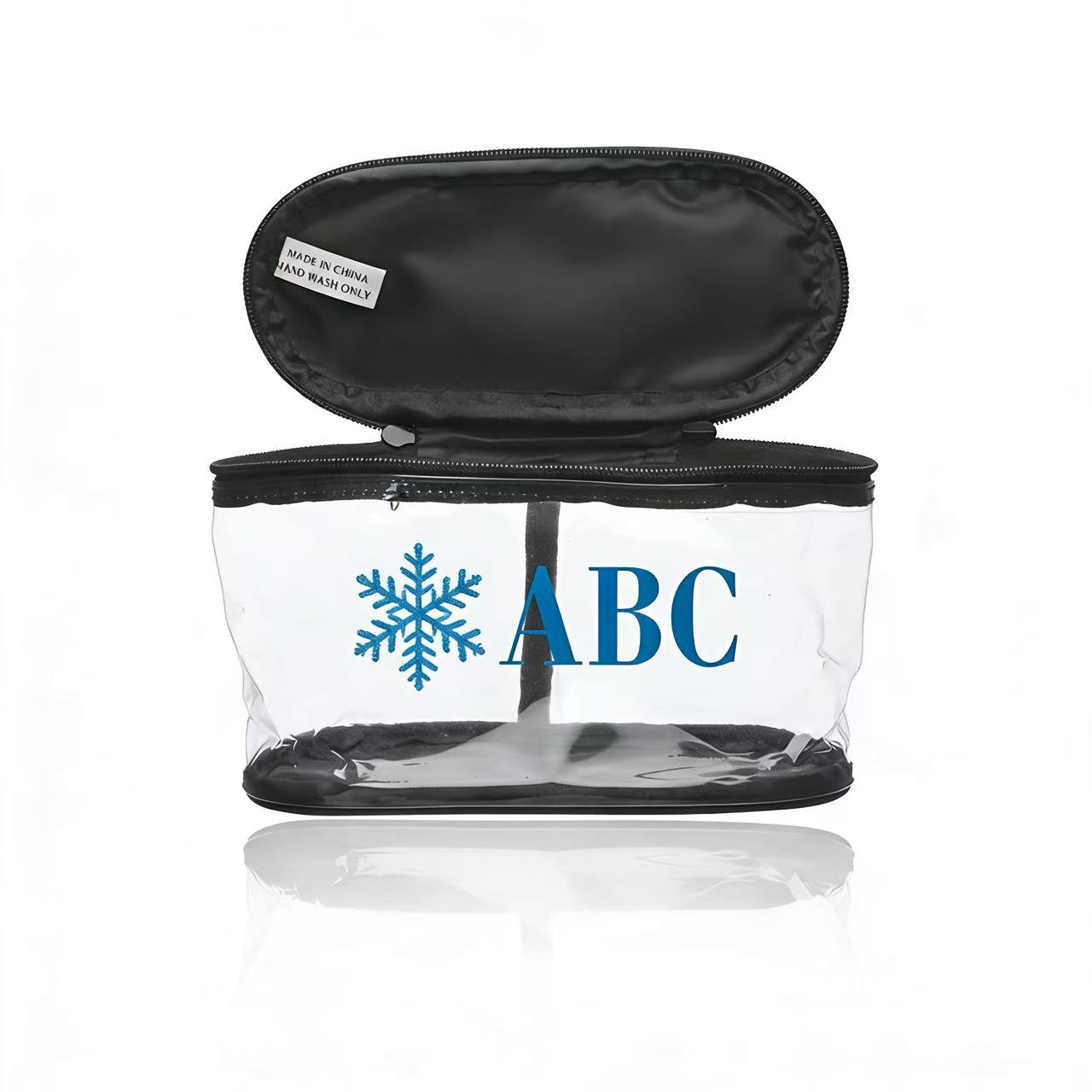 A great way to store small items! Portson Cosmetic Travel Bag is made of clear PVC for long-lasting use. Two black zipper bag is roomy enough to easily store your lipstick, lip gloss, makeup palettes. Sewn handle on top for easily carrying. Perfect to hold toiletries, beauty supplies or other small materials when traveling or home storage. 3 days rush available for 1 color imprint only upon request.