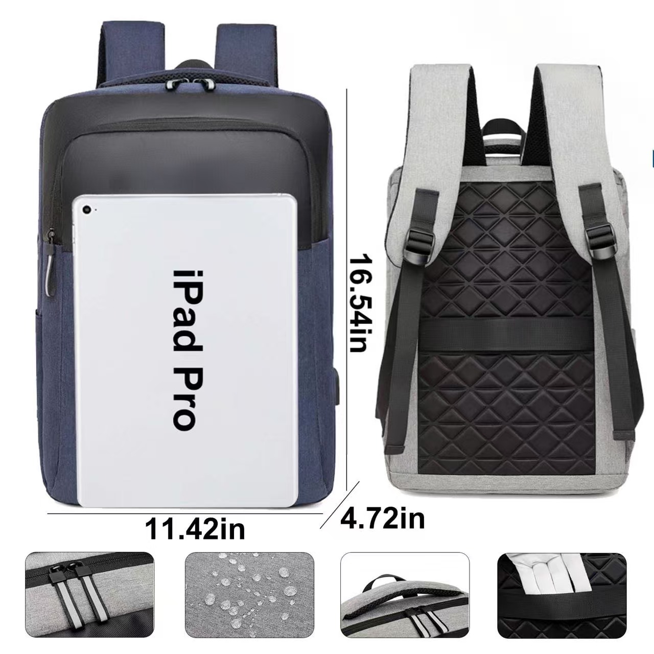 Quedoo Computer Backpack with 3 zippered pockets and several interlayers is able to hold something in different sizes, from a cellphone to a computer up to 15.6″. A side pocket provides extra storage space. Featured outside charging port for easy charging access. Breathable padded backside with ergonomic design relieves you from the burden. Thickened carrying handle and adjustable shoulder straps allow you to carry the bag in two ways. The bag with the belts on the top and back can be hung or fixed on the suitcase with the belts on the top and back. The bag with modern look is made of water-proof and wear-resistant oxford fabric. Ideal for students, businessmen or even hiking lovers during school time, commuting, outdoor activities.