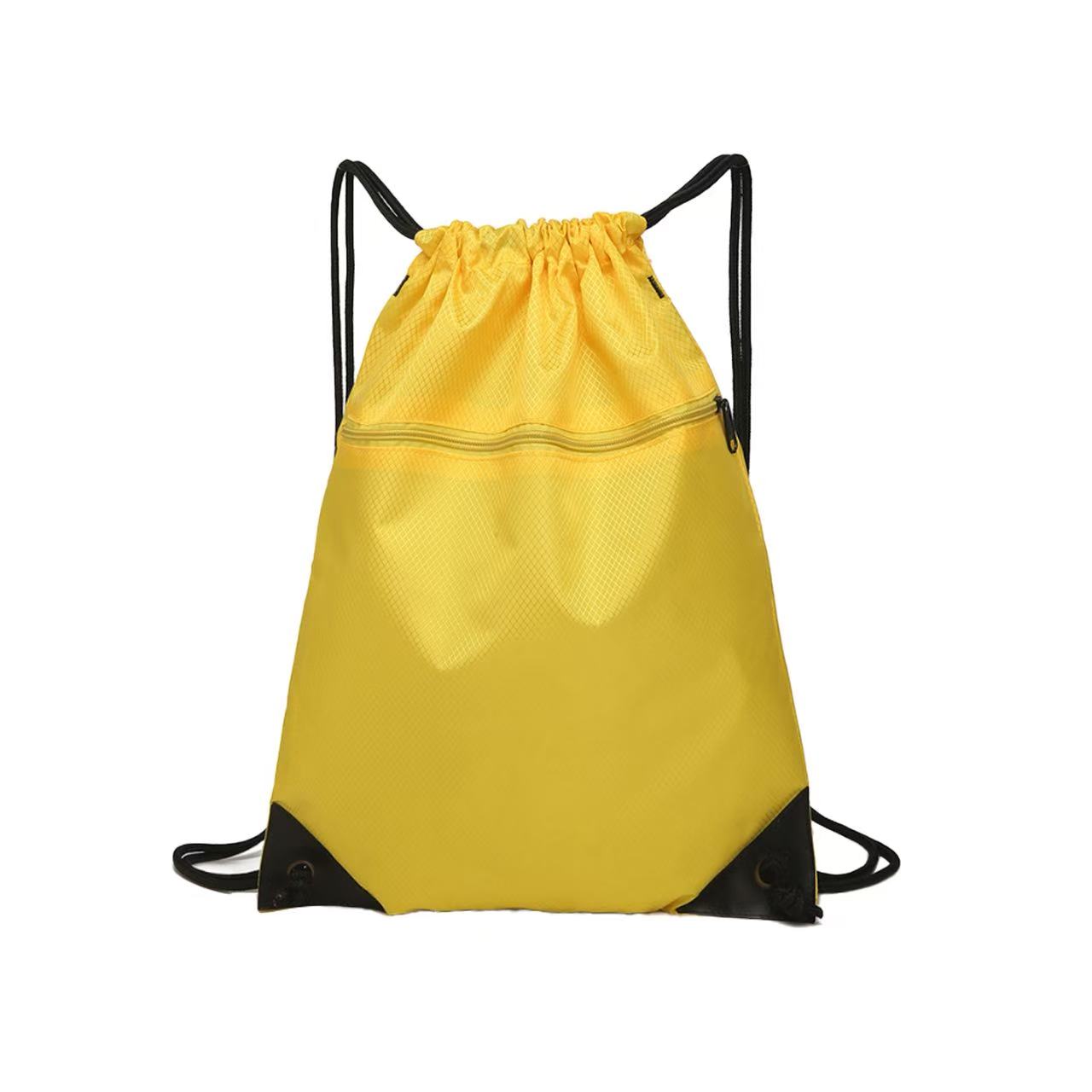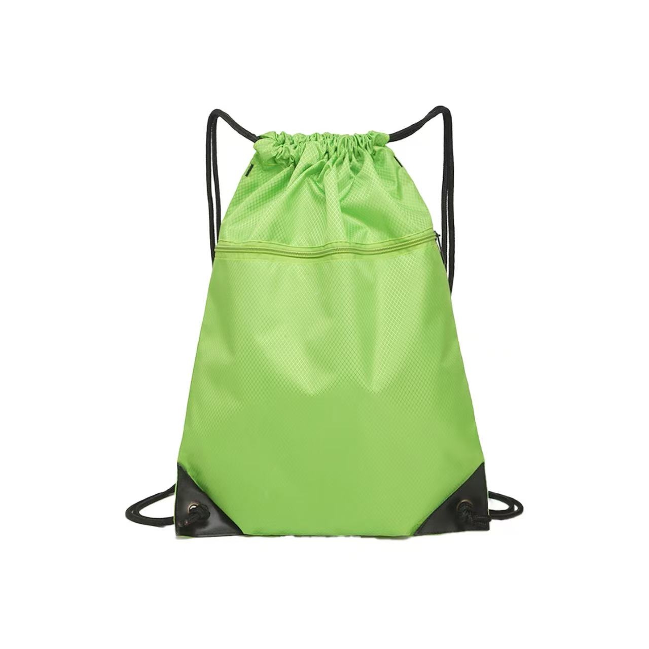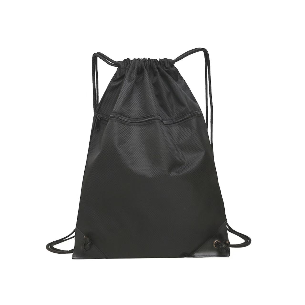 Bring along a change of clothes or shoes to the gym or playing field in the Raddix drawstring backpack. Made of waterproof nylon material, this 15.75″ x 13.77″ x 0.39″ pack has a roomy interior to store all of your important gear with a front zipper pocket, wide opening, reinforced corners and dual shoulder straps. Suitable for work, school and other outdoor activities and adventures. Available in assorted colors. Add your school, sports team, organizational or company logo or message to customize.