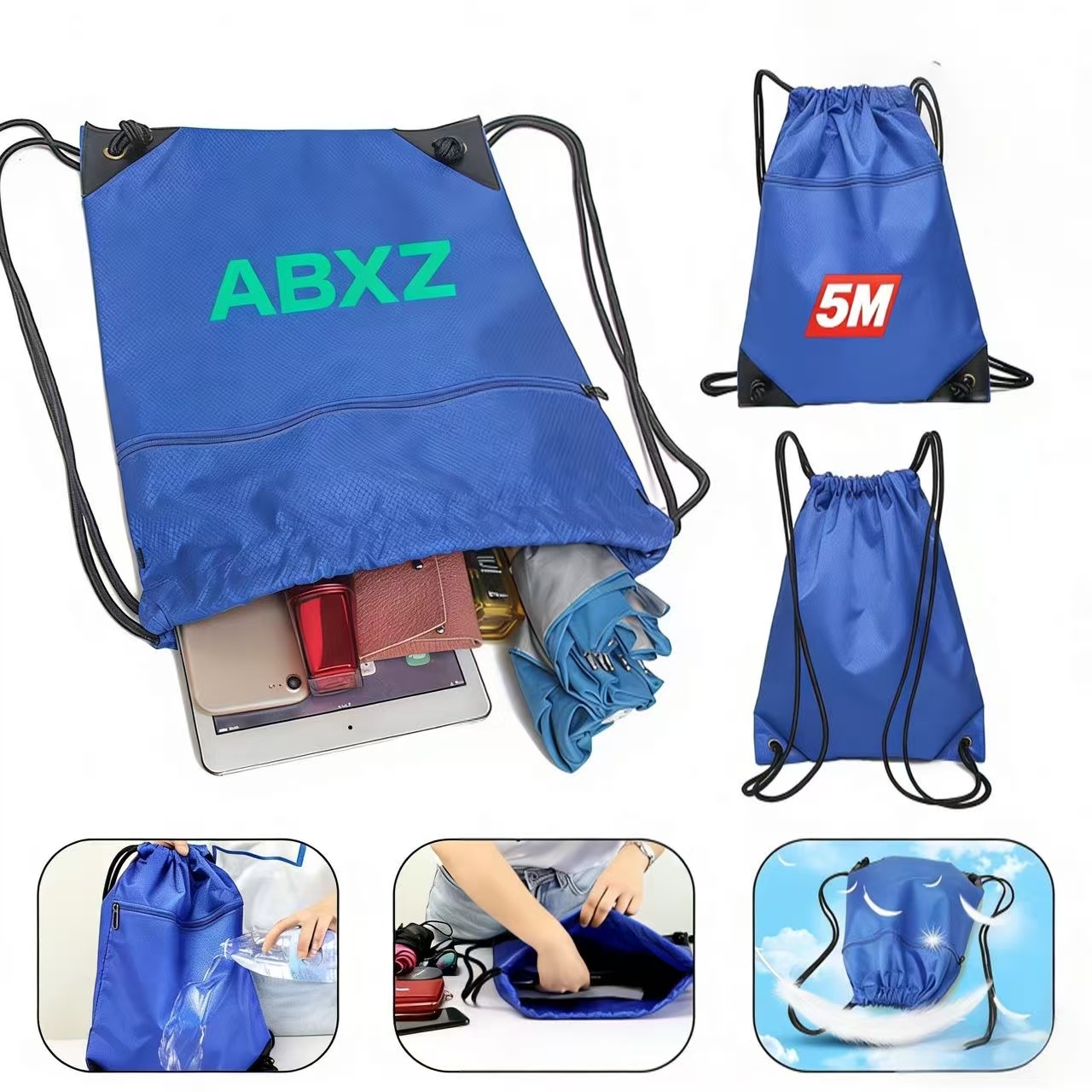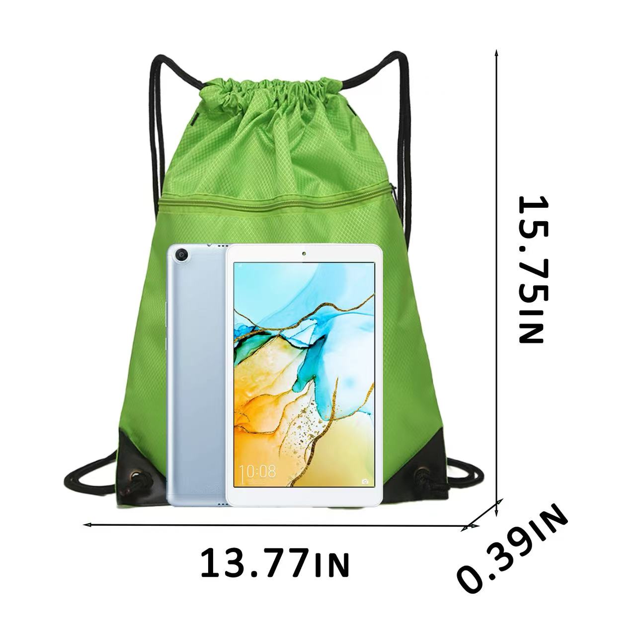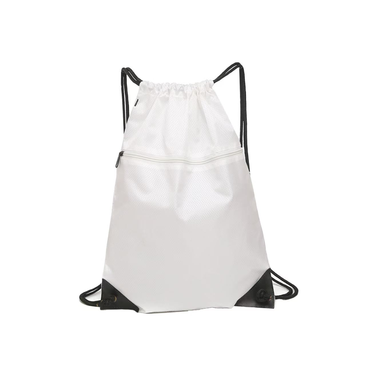 Bring along a change of clothes or shoes to the gym or playing field in the Raddix drawstring backpack. Made of waterproof nylon material, this 15.75″ x 13.77″ x 0.39″ pack has a roomy interior to store all of your important gear with a front zipper pocket, wide opening, reinforced corners and dual shoulder straps. Suitable for work, school and other outdoor activities and adventures. Available in assorted colors. Add your school, sports team, organizational or company logo or message to customize.