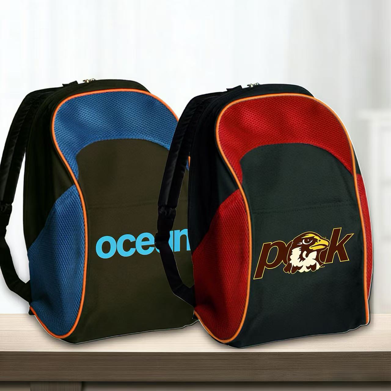 Two tone promotional school backpack make Raster fashionable and unique! Made of rip-stop air mesh. Innovative and stylish design bag with large main pocket and front pocket provide optimal storage. Adjustable shoulder straps to fit your height. Available in different color options with large imprint area. Perfect for fashion-minded adolescents and adults, teenagers to school, etc. 3DAYS Rush available for 1 color imprint upon request.