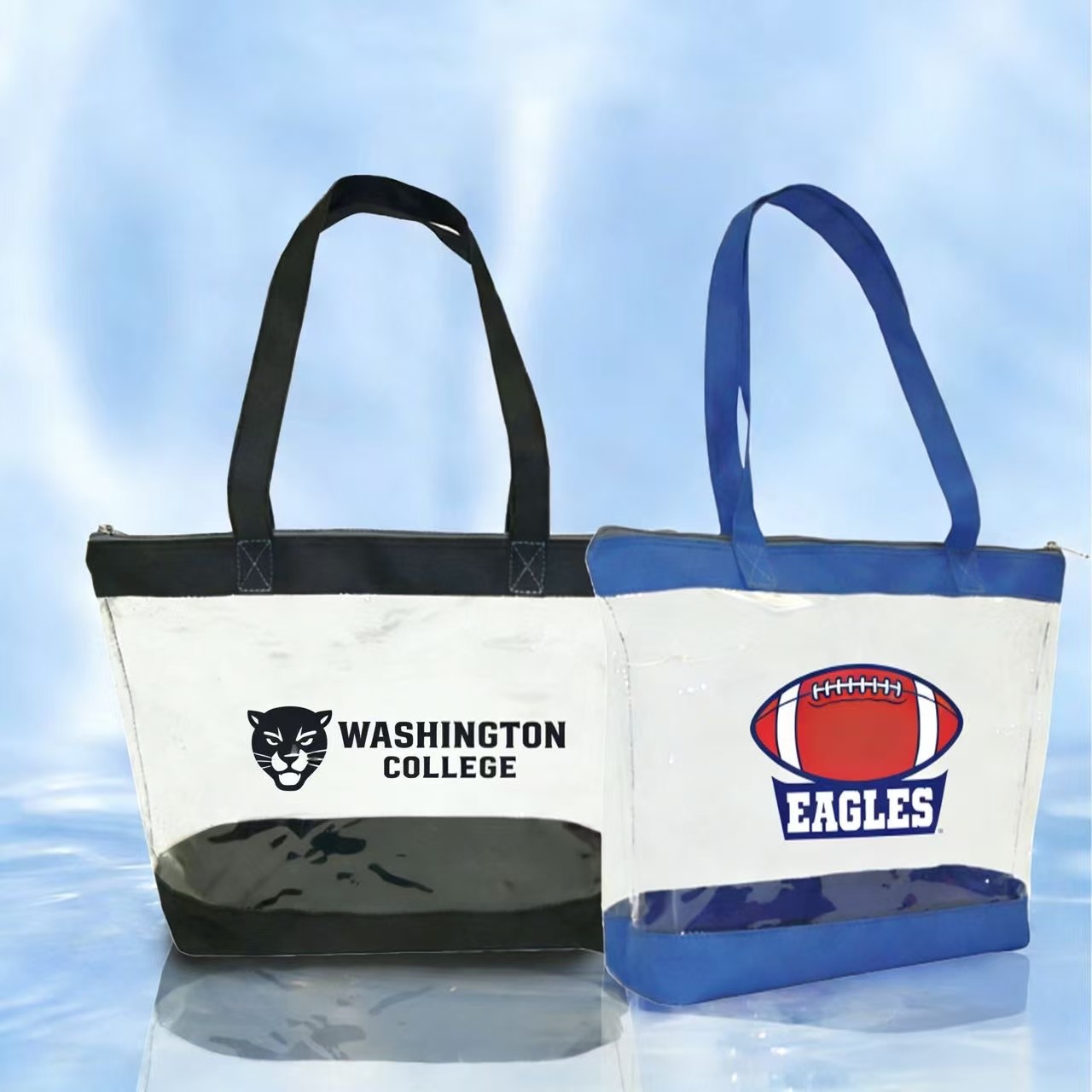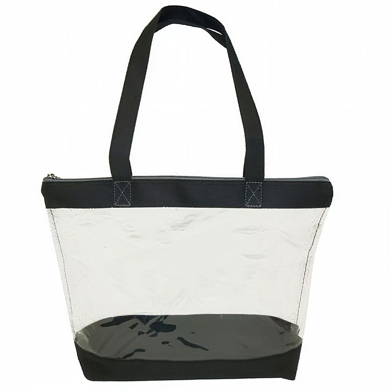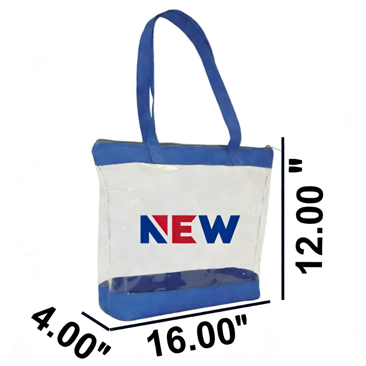 With your logo on the front of the Rumin Clear Tote Bag, you can create a great marketing tool. Made of high-quality PVC with 600 denier trim, this 16″ x 12″ x 4″ tote features a transparent design, gray zipper, colored fabric bottom and matching handles. Perfect for resorts, hotels, tradeshows, beach stores and more!