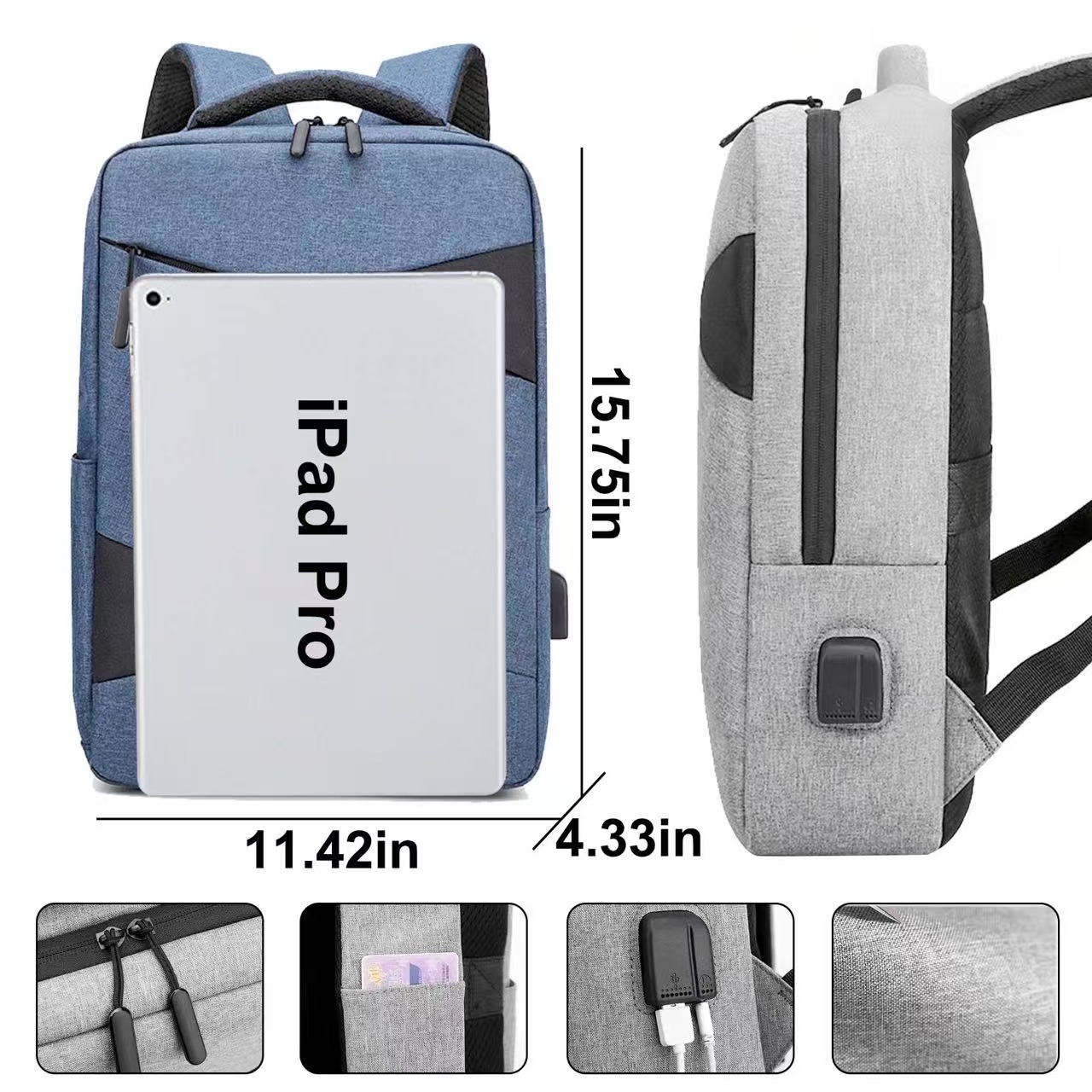 Perfect for anyone always on-the-go! Tabit Business Backpack is made of waterproof and wear-resistant Nylon fabric and polyester lining. Larger roomy pocket provide separated space for laptop, A4 files and clothes, with a front and a side pocket is available for easy access of small stuffs. Strap pocket fits bus card or Metro Card. Built-in USB port is convenient to charge your phone by connected power bank (not included). Adjustable padding shoulder straps and sturdy handle offer you comfort carrying for a long time. Fix the bag on the suitcase upright handle with the fixed belt to free your hands on your trip! It would be your necessity during school time, commuting, outdoor activities.