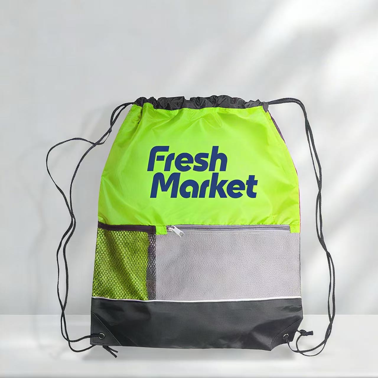 The brilliant colors draw eyes and the large imprint area keeps them focused on your logo. Tremise Drawstring Backpack is made of durable 210D polyester. Large opening design help you to store things quickly, comes with a front zipper pocket and mesh pocket perfectly fits keys or cards. Suitable for yoga, dance, travel, carry-on,corporate events and promotional giveaways. 3 days rush available for 1 color imprint only upon request.