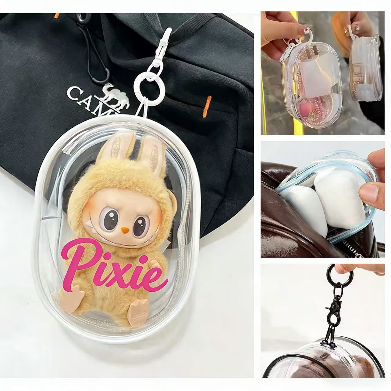 Showcase your lovely dolls with Vega Clear Doll Display Pouch. Vega Clear Doll Display Pouch is made of transparent PVC material, featuring durability and waterproofness. You can put your favorite dolls or figurines in it, and this completely clear doll display pouch allows every passers-by to see them. It can protect your beloved dolls inside, preventing them from being spoiled and dirtied. Put your doll in and hang it on your bag, making it easy to carry anywhere. Perfect for doll collectors and young people. Standard with one doll display pouch. Premium with doll diaplay pouch with carabiner available with additional charge.
