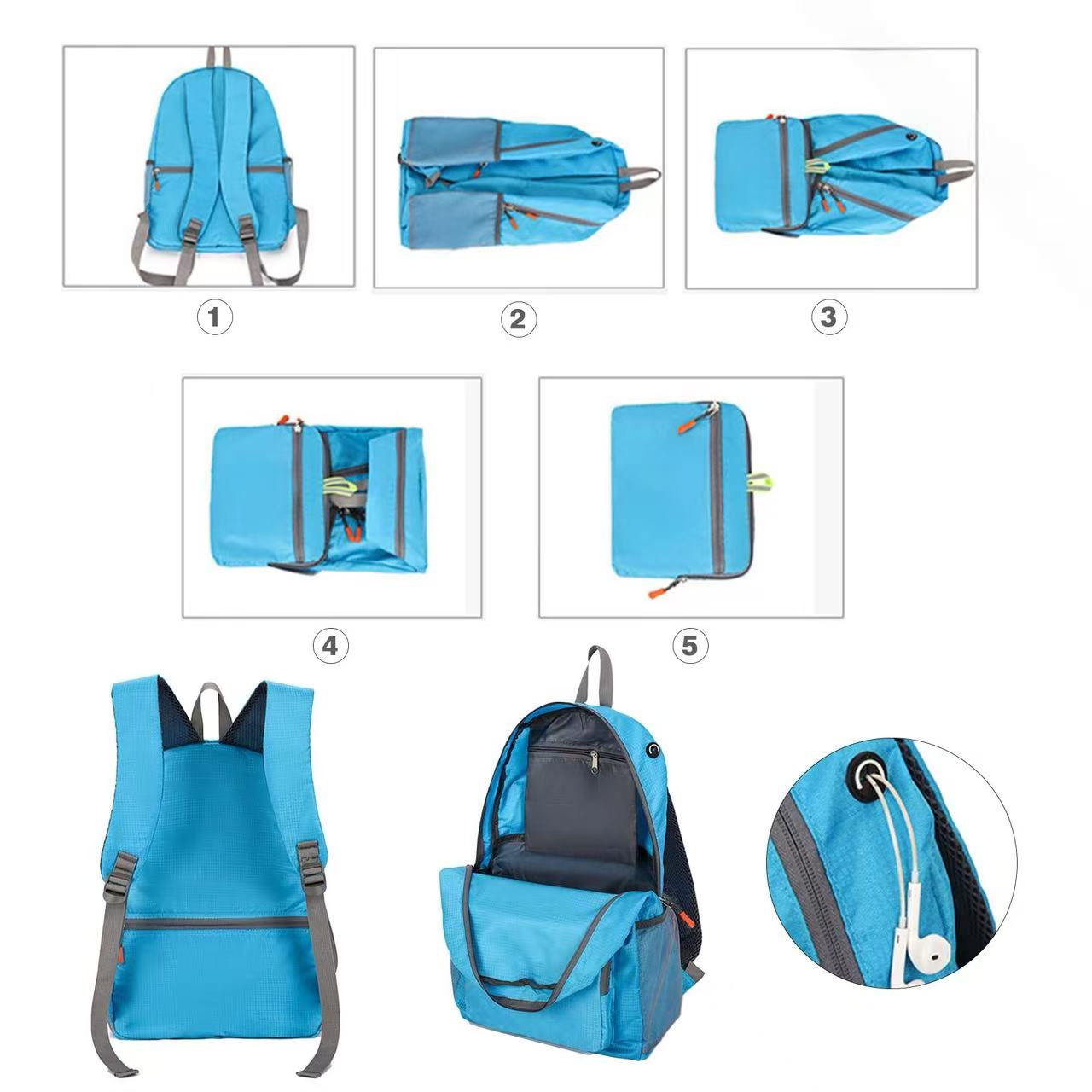 Keep your essentials secure and easily accessible with Venda Foldable Travel Backpack. This backpack is crafted from RPET waterproof nylon fabric. The main pocket includes a zippered inner pouch and a dedicated earbud slot. Its foldable design allows it to be easily compressed into a compact size for easy storage. Two zippered pockets on the front and back provide extra storage, while side mesh pockets offer convenient space for water bottles or small items. The adjustable, padded shoulder straps ensure comfort during outdoor activities. Customize with your logo and spread brand awareness! Perfect for hiking, travel, or daily commuting.