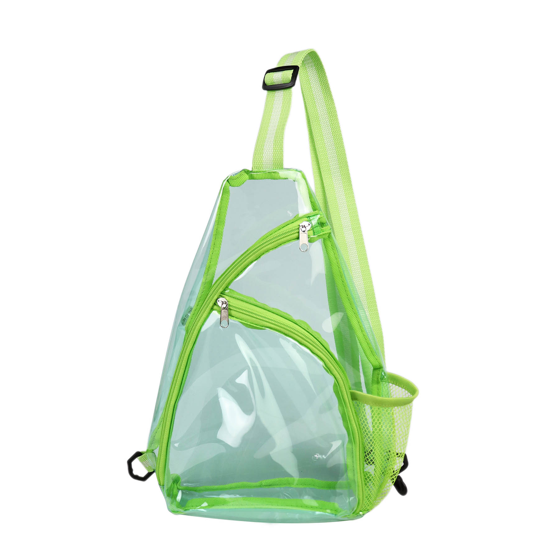 Keep all your essentials around you! Made from soft 25C TPU and 600D polyester material, this clear backpack is ideal for efficient organization and visibility to your belongings! Comes with a large zippered main pocket, a front zippered pocket and side mesh pocket to meet your daily use and sharing needs. Adjustable shoulder strap for different wearing styles. Imprint your logo or website to get brand awareness on sporting events, concerts, festivals, etc.