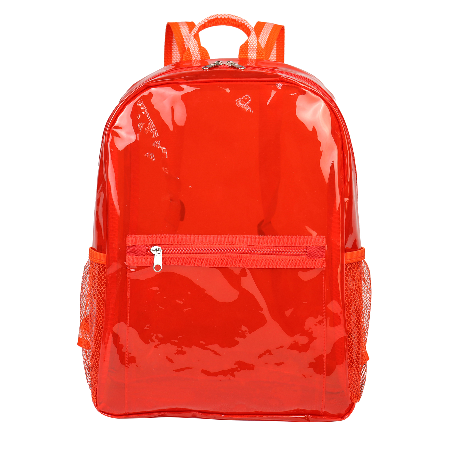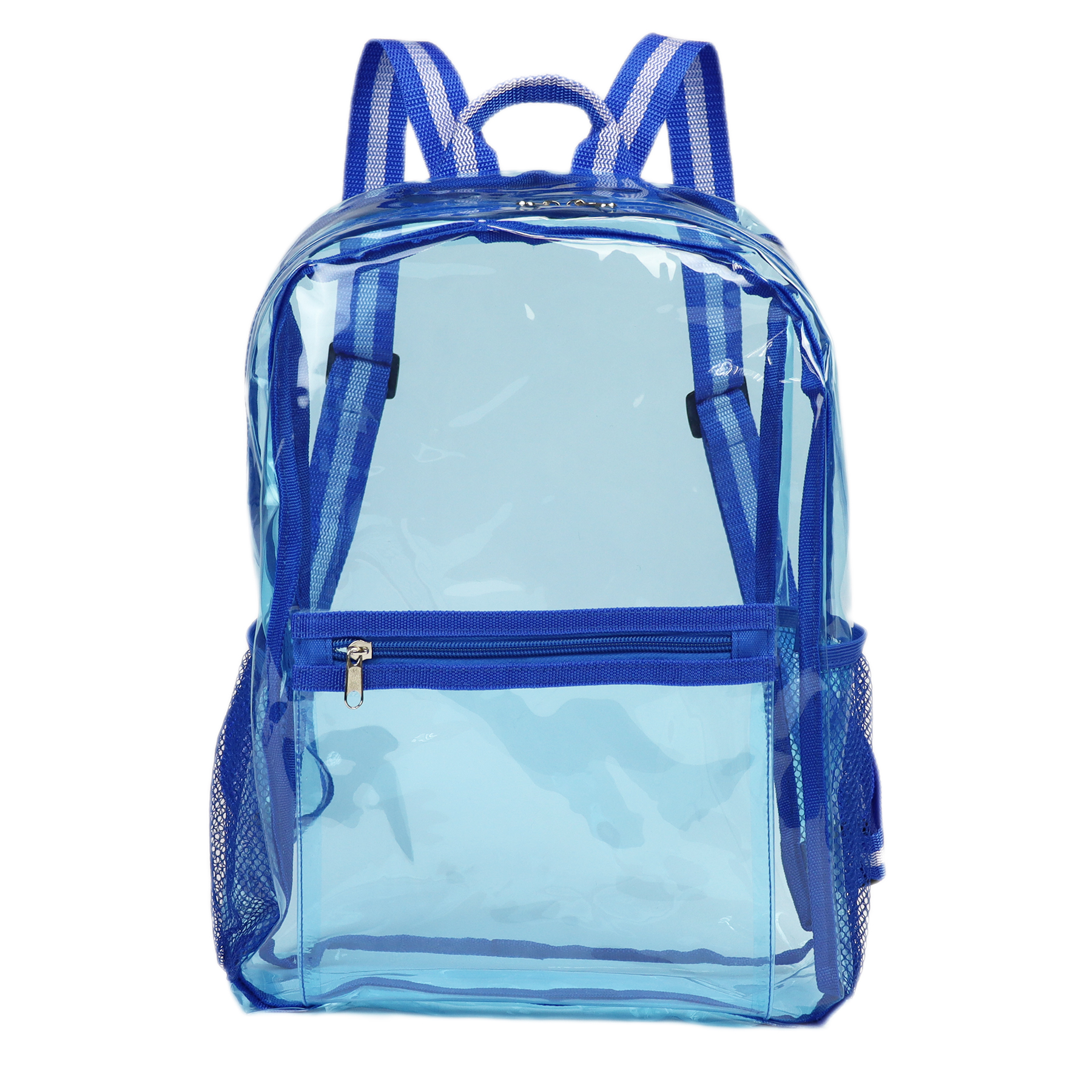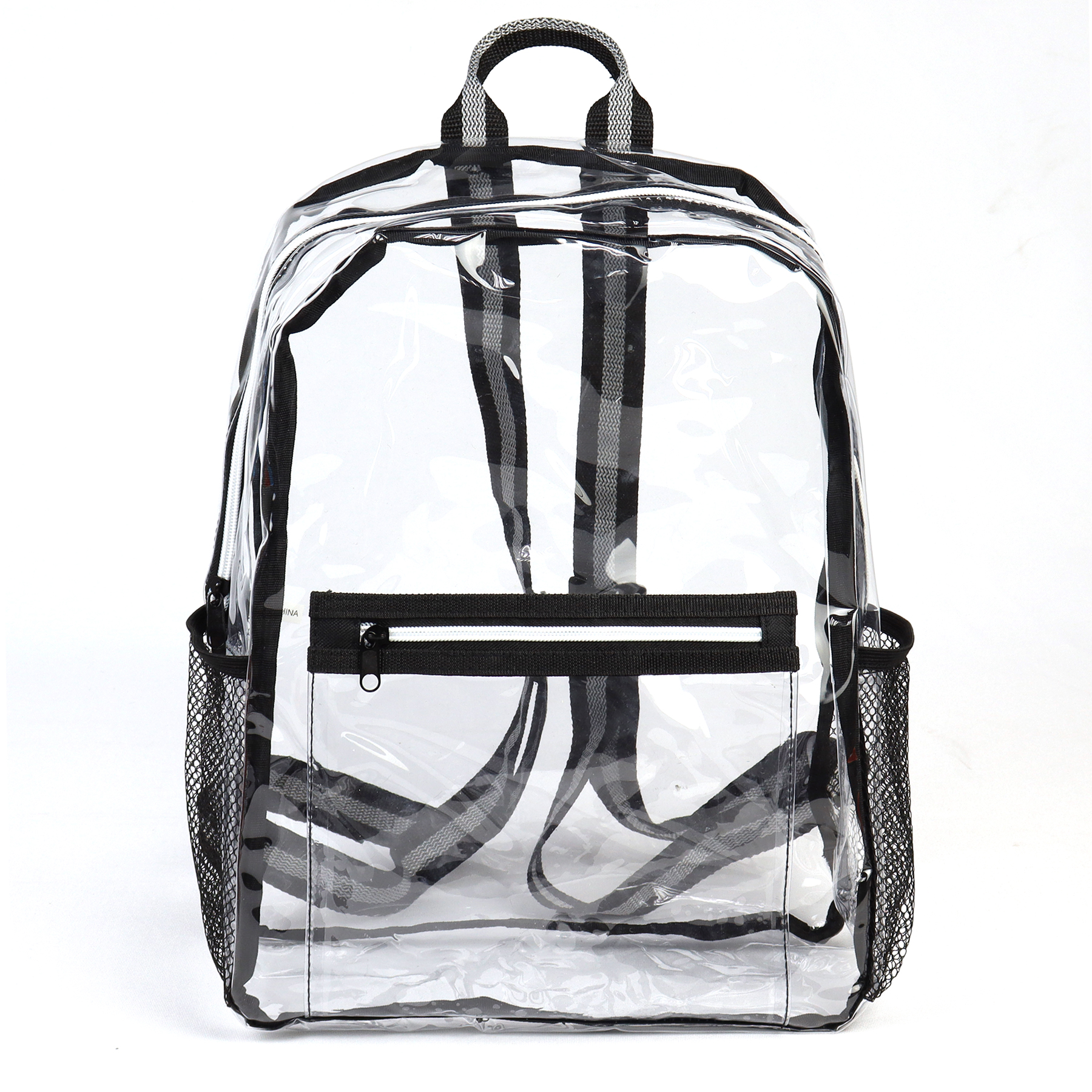 Stylish and functional clear see-through design enable users to see their stuff inside the bag quickly. Made of 30C TPU and 600D polyester, which is 100% BPA and PVC free, Waito backpack features adjustable shoulder straps and top handle release the stress from heavy stuff. The large zippered main pocket with a front pocket for phone or pens, and two sides mesh pockets for storing your bottle. Add a unique logo for your team, school, airline, store, festival or hospital.