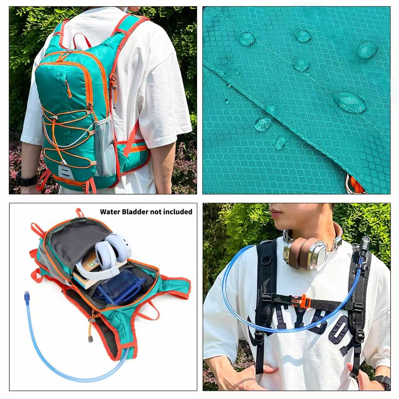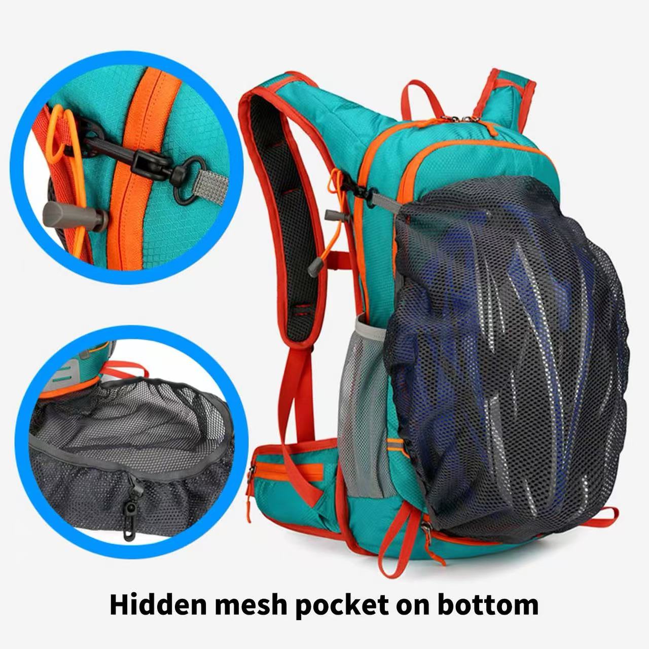 Enjoy the fun of outdoor sports with Yadira Sports Backpack! This backpack is made from high-quality polyester material, waterproof and lightweight. Its large capacity design can easily hold laptops, water bladders, and other outdoor essentials. The internal compartment design helps with organized storage. A water bladder and drinking straw can be fixed inside the backpack, making it convenient for you to drink (water bladder and drinking straw not included). The breathable mesh fabric on the back ensures comfort during physical activities. The external multi-layer storage pockets allow for quick access to daily items, the elastic bungee cords can secure trekking poles, and the hidden bottom net makes it convenient to store a helmet. The reflective strip design on the backpack enhances safety during nighttime travel. Ideal for sports, cycling, hiking, traveling, etc.